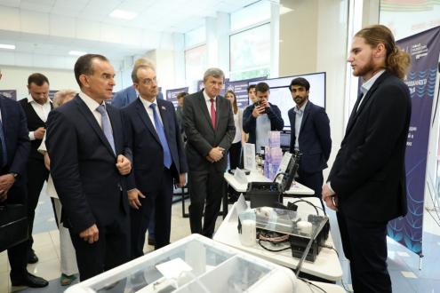 29 мая в Кубанском государственном университете состоялась выставка инновационных проектов молодых ученых Краснодарского края. Мероприятие посетил глава администрации региона Вениамин Кондратьев, а также председатель ЗСК Юрий Бурлачко, вице-губернатор Александр Руппель, и.о. ректора КубГУ Михаил Астапов.