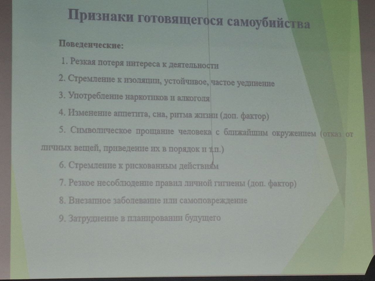 Вторая часть выступления была посвящена работе психологической службы университета – руководитель службы Юлия Петровна Станоева поделилась практическими советами по обнаружению маркеров девиантного поведения, свидетельствующего о возможных психологических проблемах студентов.