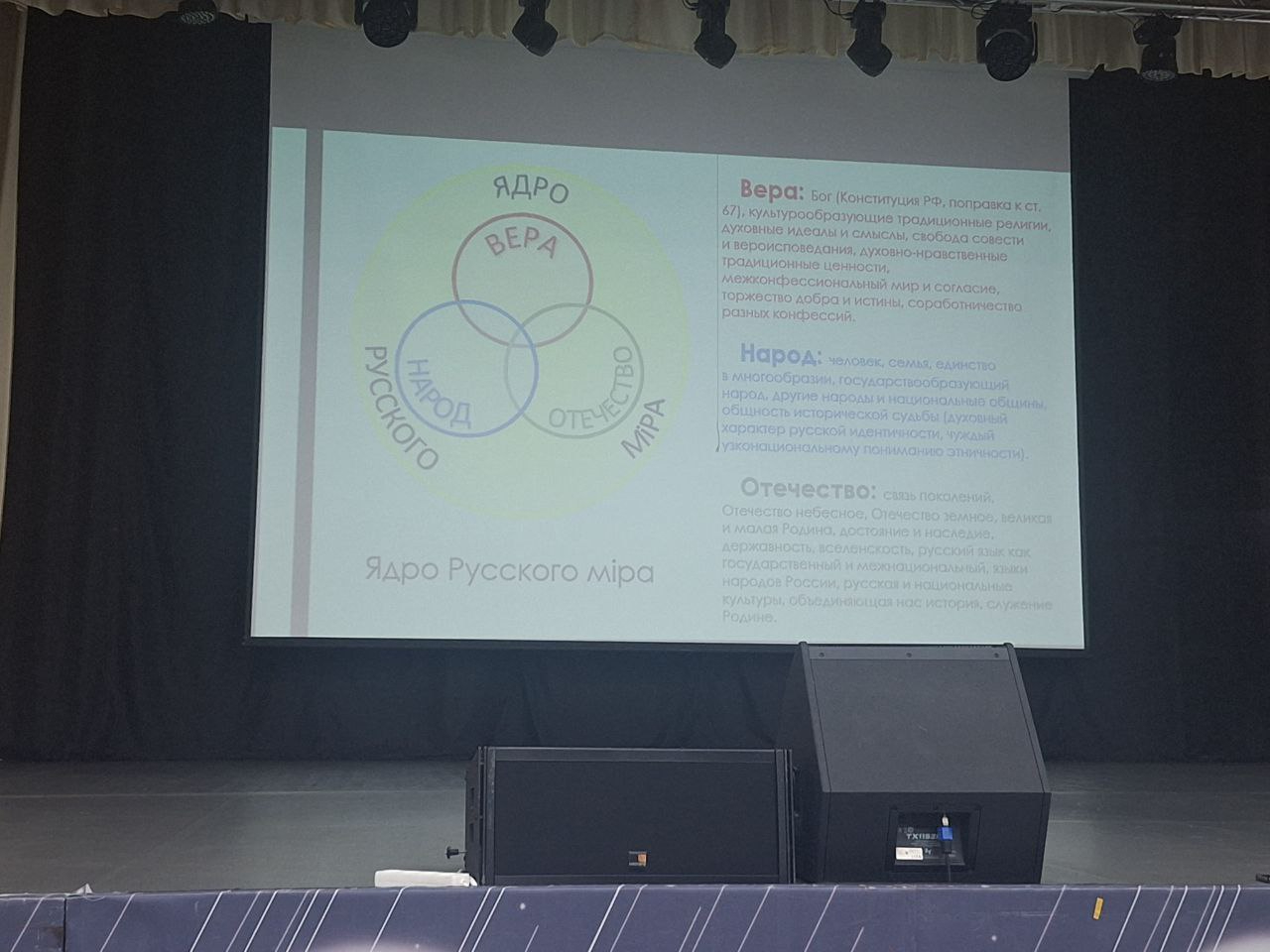 В третьей части теоретическое обоснование краеугольного камня нашего общества – идеи «Русского мира» – представил профессор кафедры социальной работы, психологии и педагогики высшего образования Андрей Александрович Остапенко.