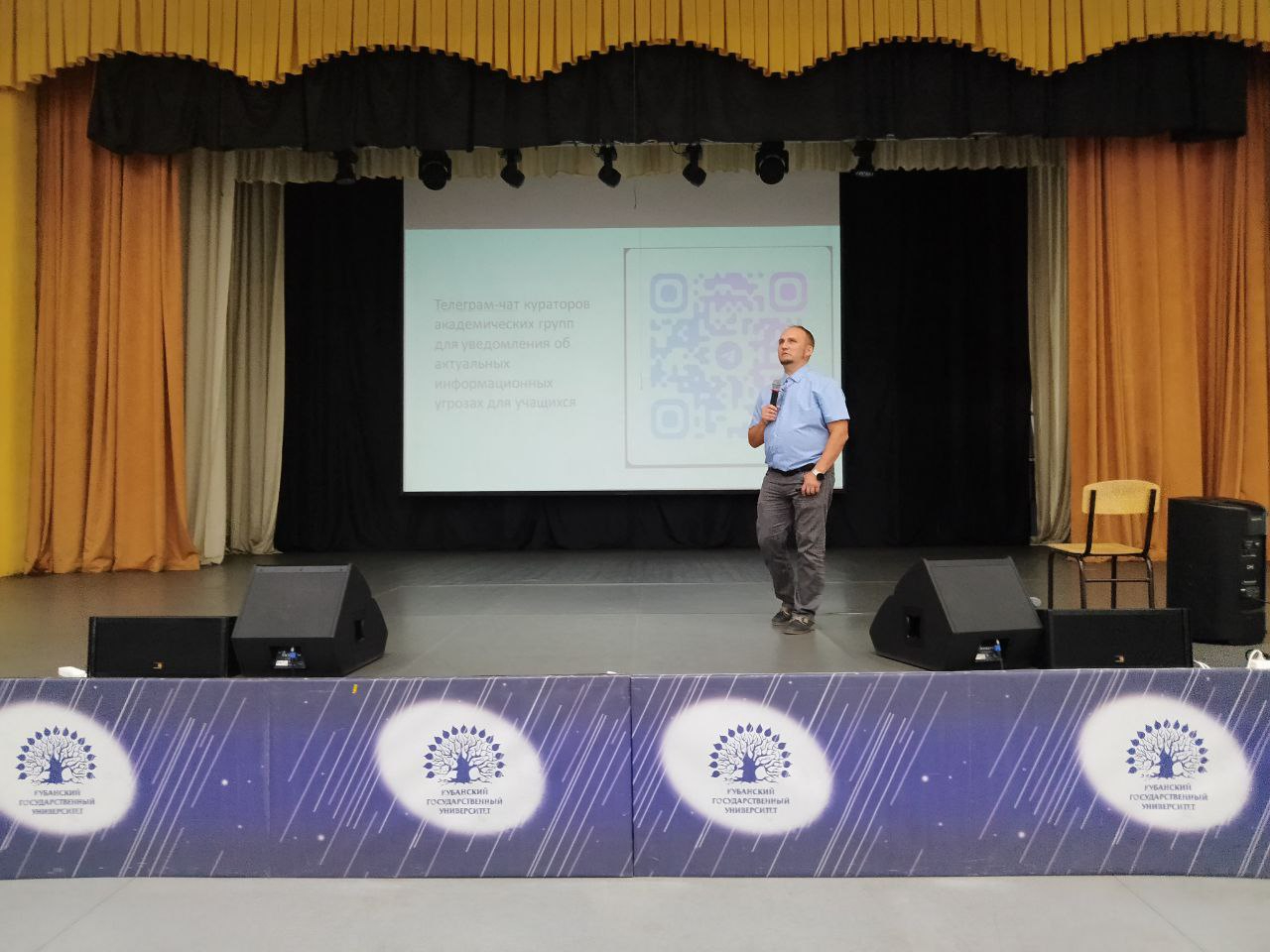 В заключительной части семинара выступили сотрудники Координационного центра КубГУ. Сперва о формах и видах взаимодействия с кураторами рассказал руководитель центра – Альберт Владимирович Якуба. Затем заместитель руководителя Андрей Дмитриевич Ерок описал угрозы, которые несет в себе когнитивная трансформация нашего общества, а старший инспектор Никита Николаевич Волченко привел примеры того, как системно работают информационные ловушки в сети Интернет.