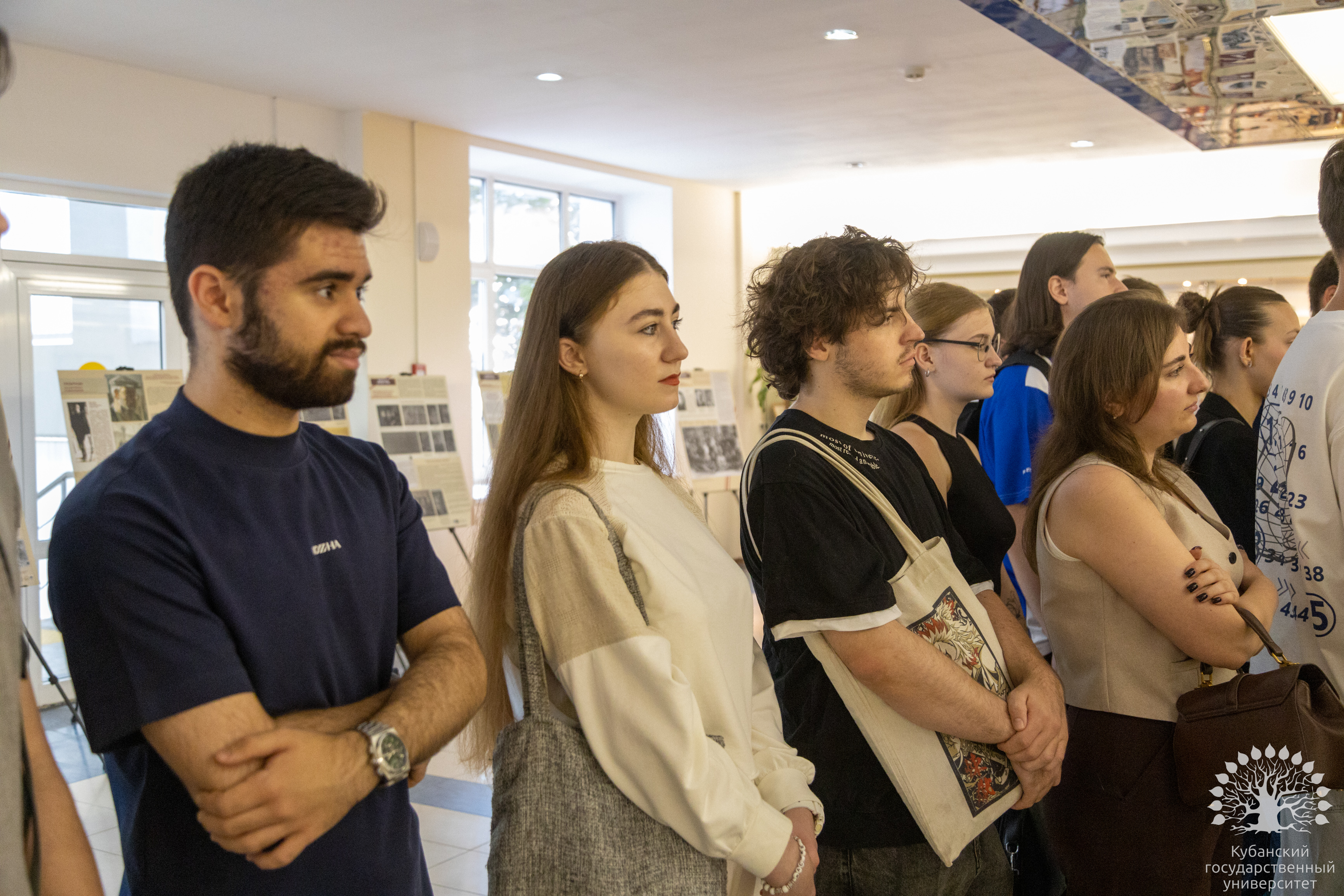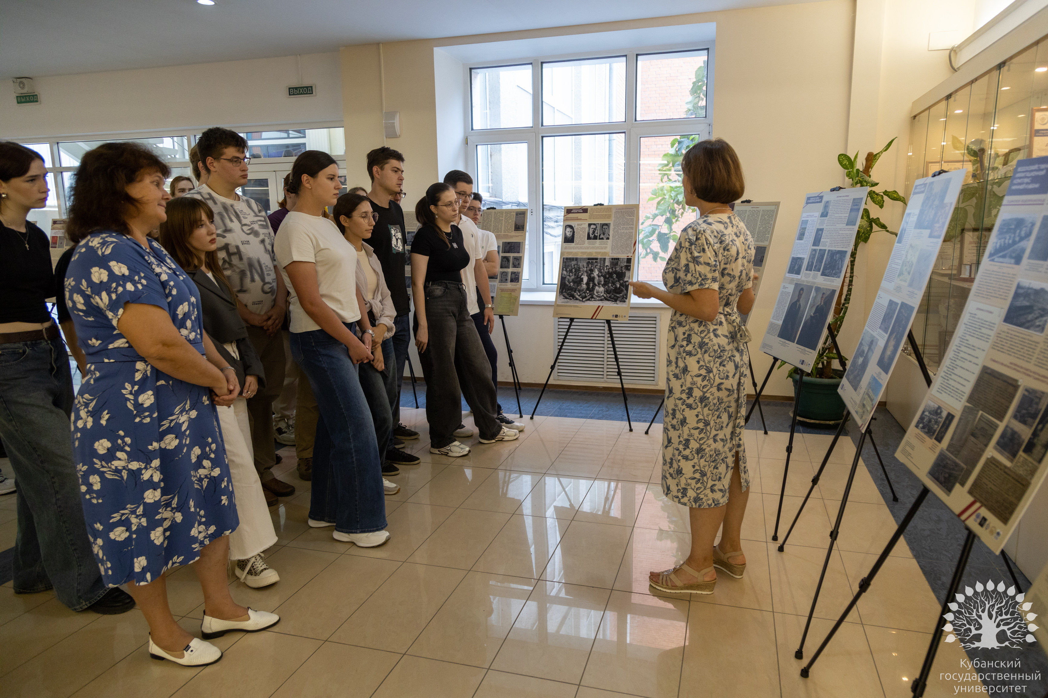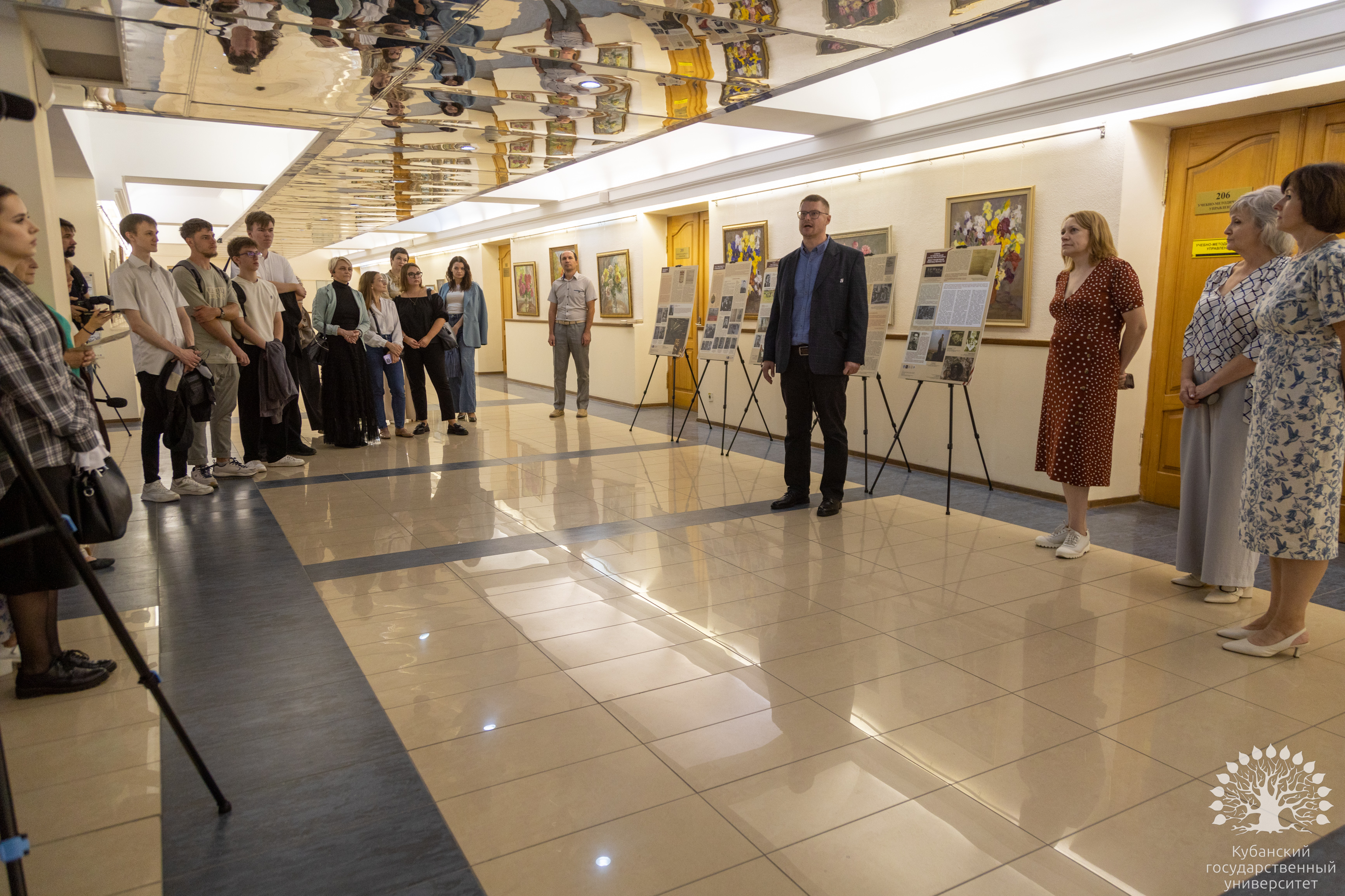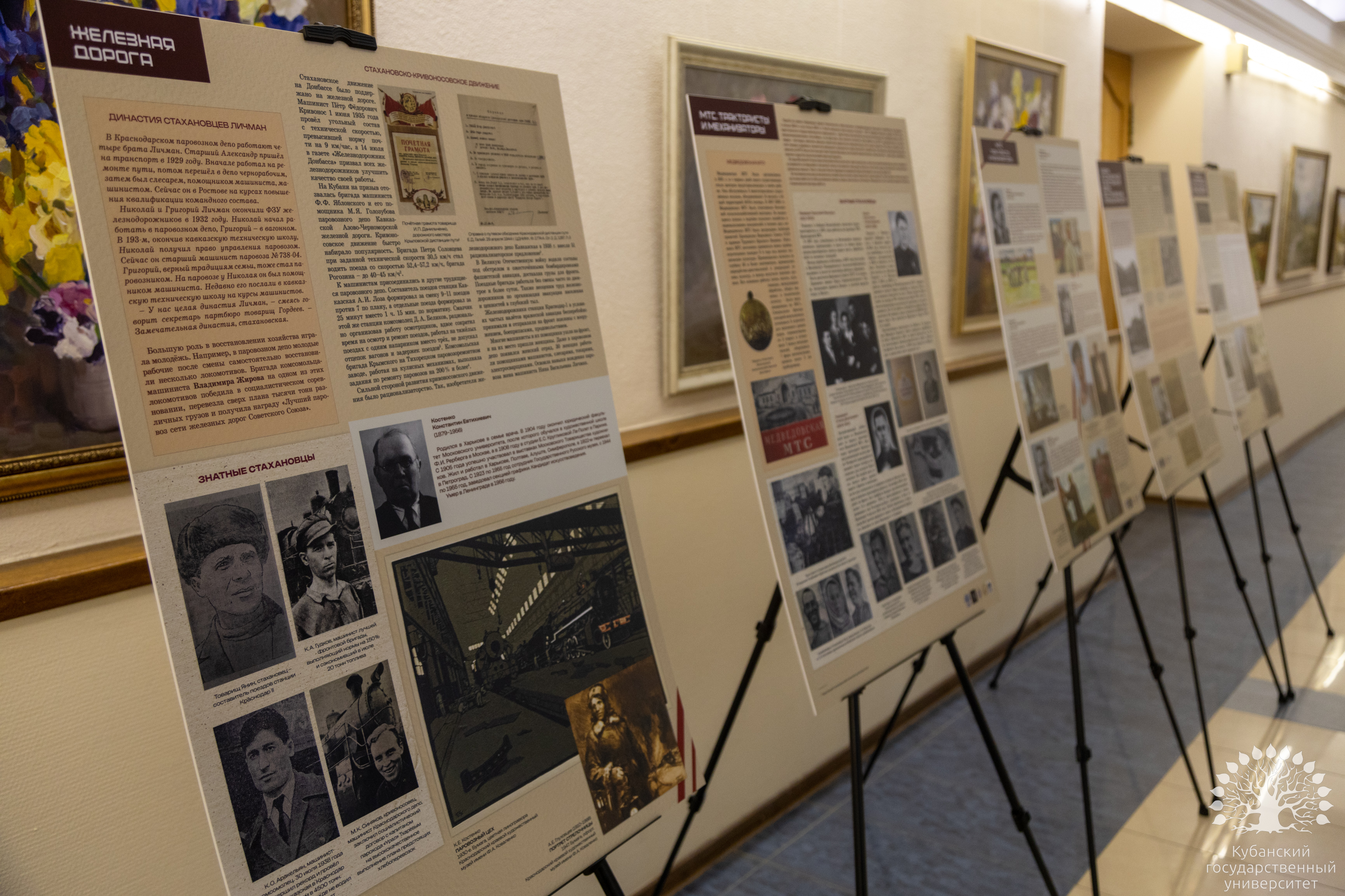 25 сентября в Кубанском государственном университете состоялось открытие планшетной мобильной выставки в рамках проекта «Трудовая слава народов СССР как залог Победы в Великой Отечественной войне (региональный аспект)», поддержанного Фондом «история Отечества» и Вольным экономическим обществом.