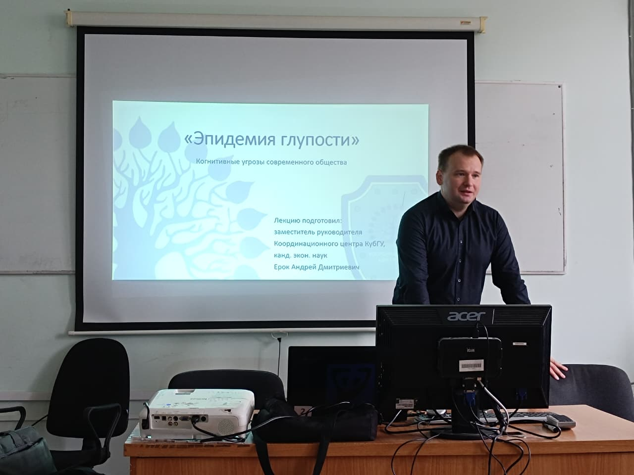Заместитель руководителя Координационного центра Андрей Дмитриевич Ерок встретился со студентами первого курса факультета управления и психологии, темой встречи была «Когнитивные угрозы современного общества». Рабочее название темы «Эпидемия глупости».