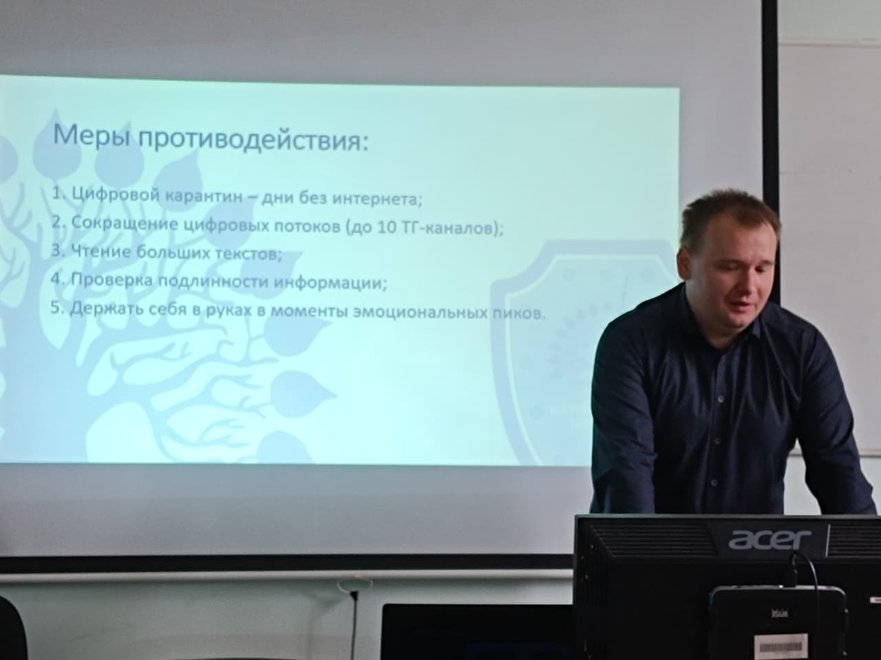 На практике люди обычно комбинируют элементы из представленных способов. Однако в условиях общества «постправды» это часто приводит к тому, что эмоциональная составляющая социальной коммуникации вытесняет рациональную, принципы размываются, а человек становится уязвим для информационных угроз различного характера. На лекции были рассмотрены психологические аспекты постоянного желания обновлять новостную ленту, иметь «белый шум» в качестве фона для работы и многое другое.