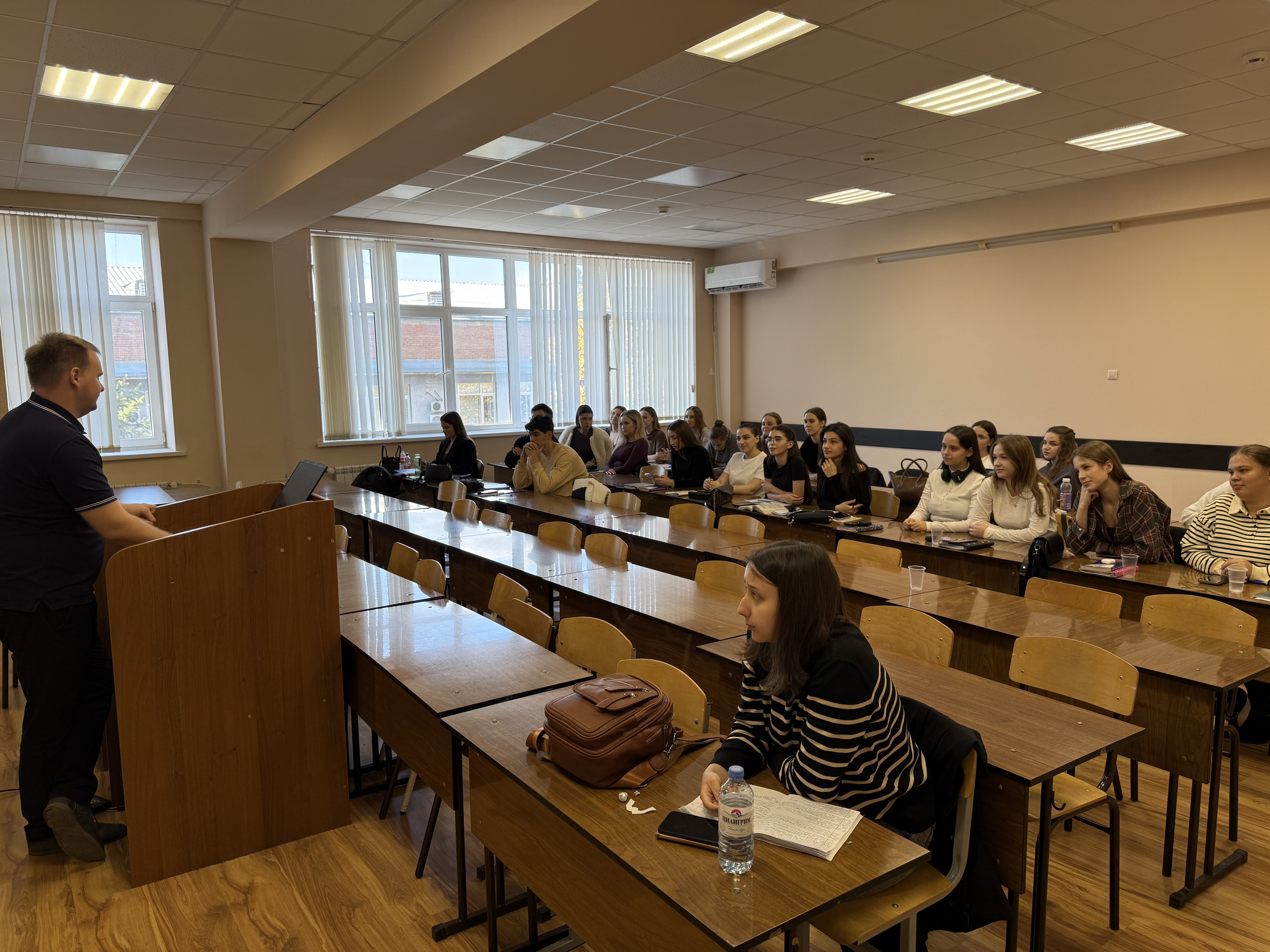 На экономическом факультете прошла встреча со студентами в формате «открытого диалога». Заместитель руководителя Координационного центра Андрей Дмитриевич Ерок пообщался с собравшимися слушателями на тему «Межнациональный диалог», где обсудили вопросы позитивного общения внутри многонационального российского народа. Действительно, любой разумный человек понимает, что фактор национальности при общении как личном, так и деловом решительно не играет значительной роли. Традиционные российские ценности заложены в ценностях и установках каждого из народов, проживающих на территории России.