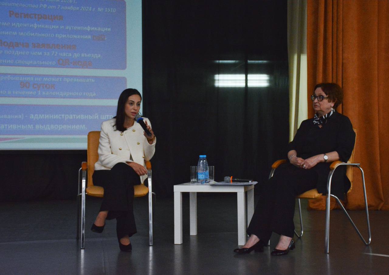 Прокурор отдела по надзору за исполнением законодательства о противодействии коррупции прокуратуры Краснодарского края Елена Канарёва подробно рассказала обучающимся о понятии коррупции и видах ответственности за совершение коррупционных правонарушений и пригласила студентов принять участие в международном конкурсе «Вместе против коррупции». Во встрече также приняли участие сотрудники ГБУ КК «Многофункциональный миграционный центр Виктория Кекало, начальник отдела консультационной и методической деятельности и Татьяна Харченко, главный специалист отдела консультационной и методической деятельности. Они ознакомили студентов с основными законами Российской Федерации, регламентирующими пребывание иностранных граждан в России, ответили на вопросы студентов по миграционному законодательству и проинформировали о дополнительных возможностях получения информационной и консультационной помощи в ММЦ.