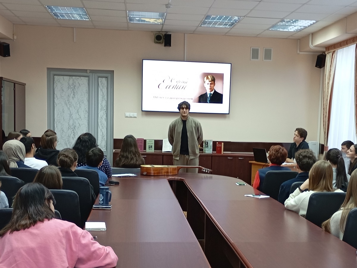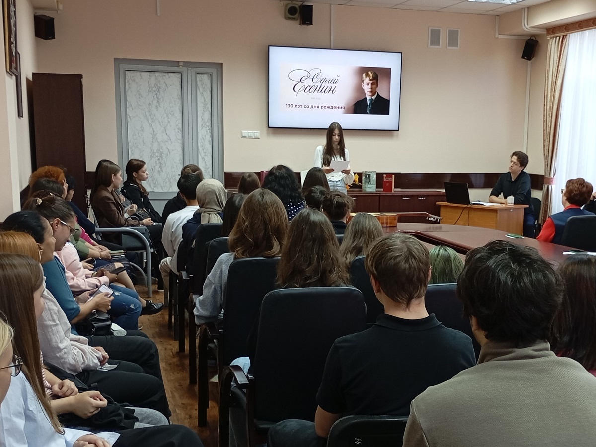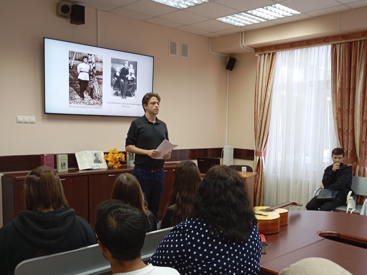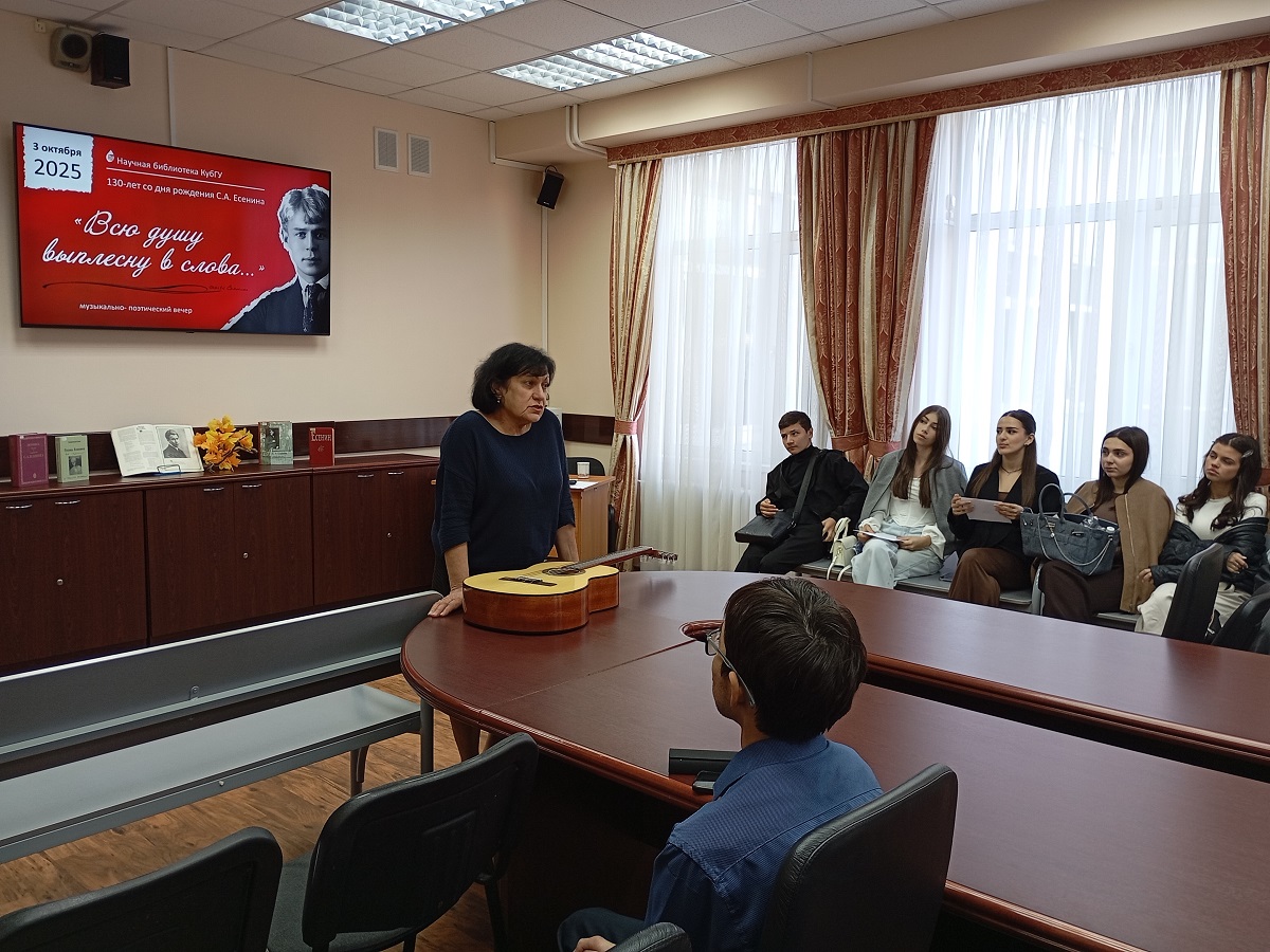 3 октября в Научной библиотеке КубГУ прошел музыкально-поэтический вечер «Всю душу выплесну в слова…», посвященный 130-летию со дня рождения великого русского поэта Серебряного века - Сергея Александровича Есенина.