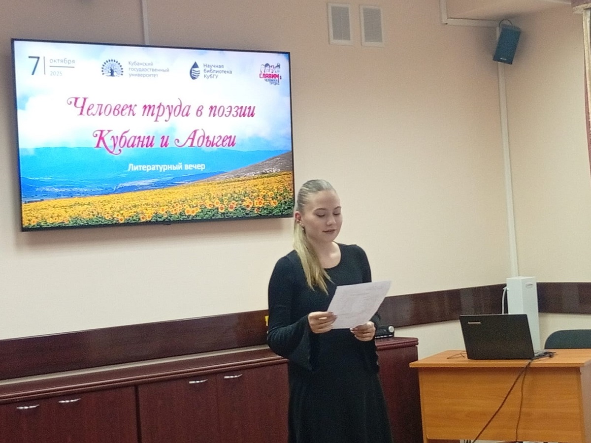 7 октября в Научной библиотеке КубГУ прошел литературный вечер «Человек труда в поэзии Кубани и Адыгеи».