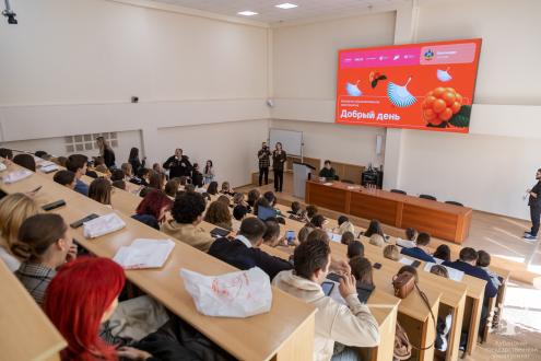 21 октября в Кубанском государственном университете прошел интенсив «Интеллекты на службе Добра» в рамках выездной образовательной программы «Добрый день». Это масштабный просветительский проект, который впервые реализует Академия развития гражданского общества «Добрино» – проект от Росмолодёжи и экосистемы Добро.рф.