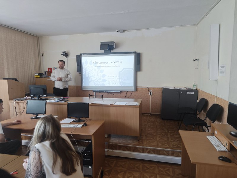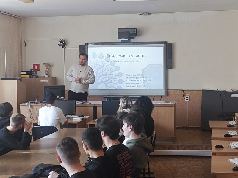 В Краснодарском информационно-технологическом техникуме прошла очередная встреча в формате открытого диалога заместителя руководителя Координационного центра КубГУ со студентами четвертого курса. В этот раз обсудили актуальную и злободневную проблему, оформленную в тематике встречи как «Когнитивные угрозы современного общества» или простыми словами «Эпидемия глупости». Эксперт вскрыл острую социокультурную проблематику, вызванную чрезмерно возросшими потоками информации, с которыми приходится сталкиваться современному обывателю. Если зрелые и пожилые люди застали современные тенденции в осознанном возрасте, то молодежь проходила все стадии социализации уже в эпоху расцвета информационных и телекоммуникационных технологий, что во многом предопределило проблематику когнитивных уязвимостей современных студентов. Проявлением подобных искажений можно назвать невозможность длительное время удерживать внимание, сложность восприятия больших текстов, эмоциональная нестабильность, сниженная критичность восприятия получаемой информации. Сюда же можно отнести и клиповость мышления, которое определяет доверие к источнику получаемой информации исключительно эмоциональной составляющей подачи контента: аудитория впечатляется не аргументами и доводами, а психоэмоциональными переживаниями, сопутствующими усвоению информации. Это, в свою очередь, создает широкое поле для маневра когнитивных трансформаций – умышленных попыток «влезть в сознание» нашей молодежи.