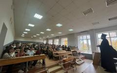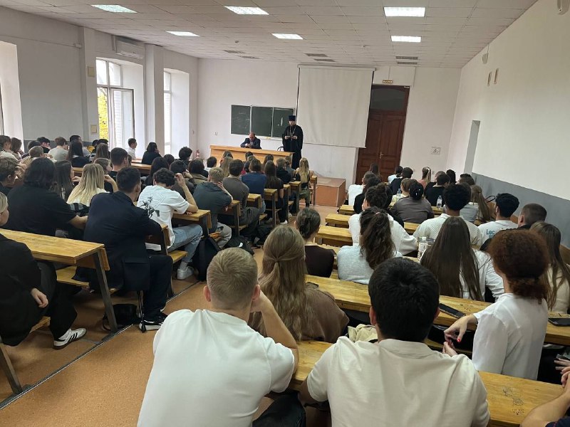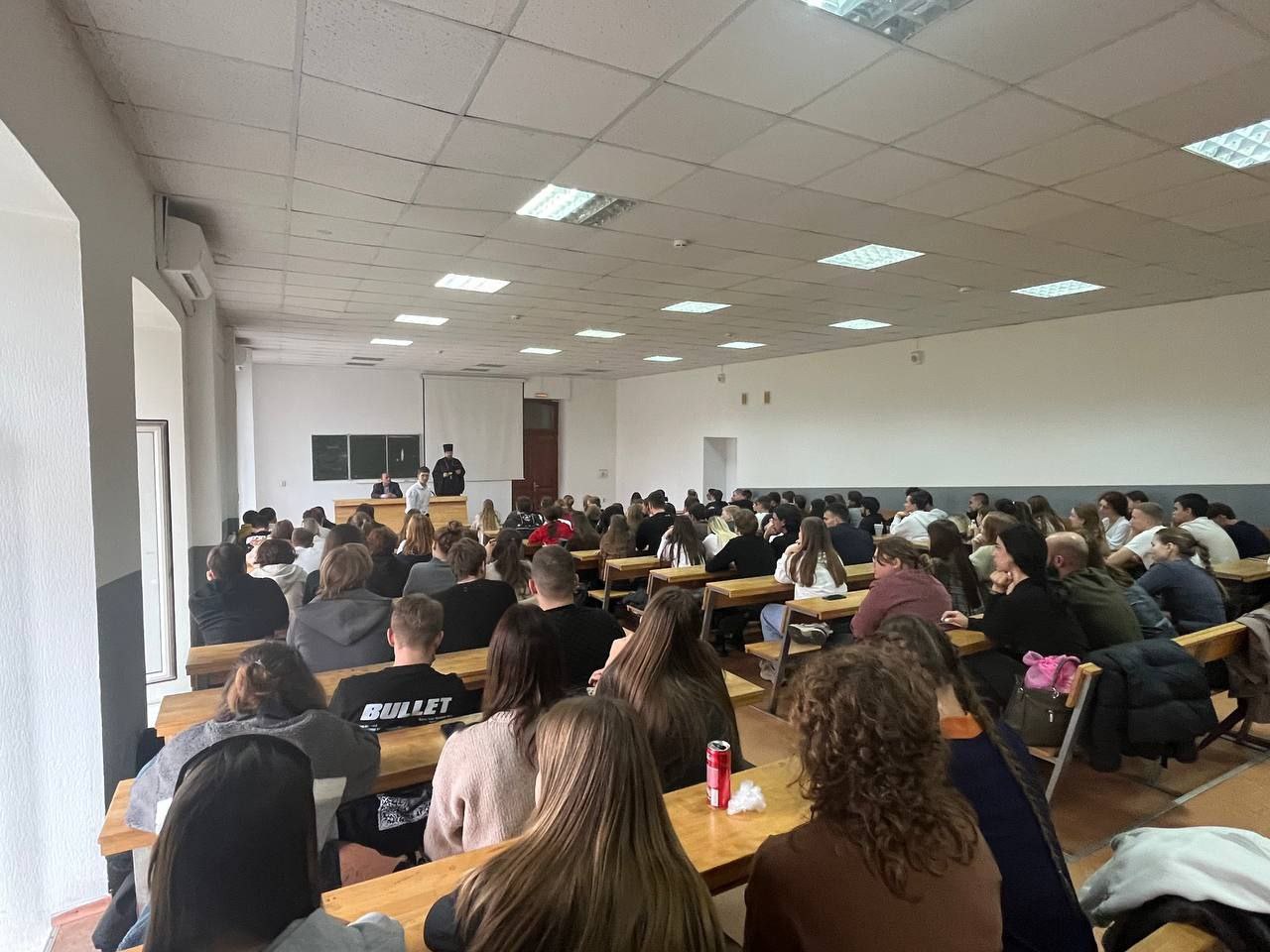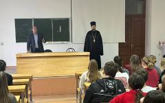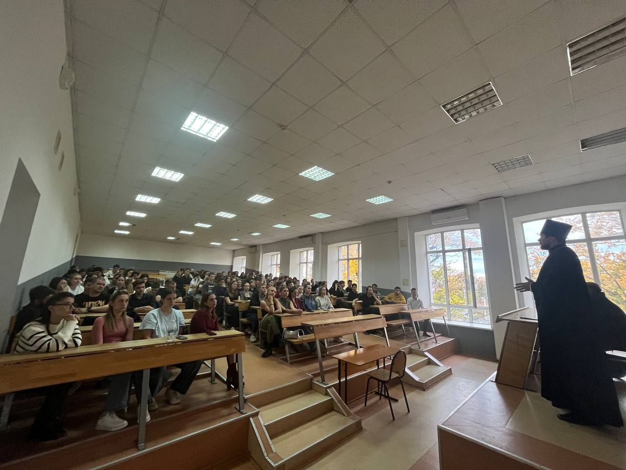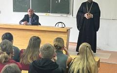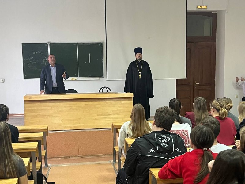 Студенты встретились с настоятелем храма святого великомученика Димитрия Солунского в Краснодаре Иереем Николаем Симора — духовником Екатеринодарского казачьего отдела Кубанского казачьего войска.