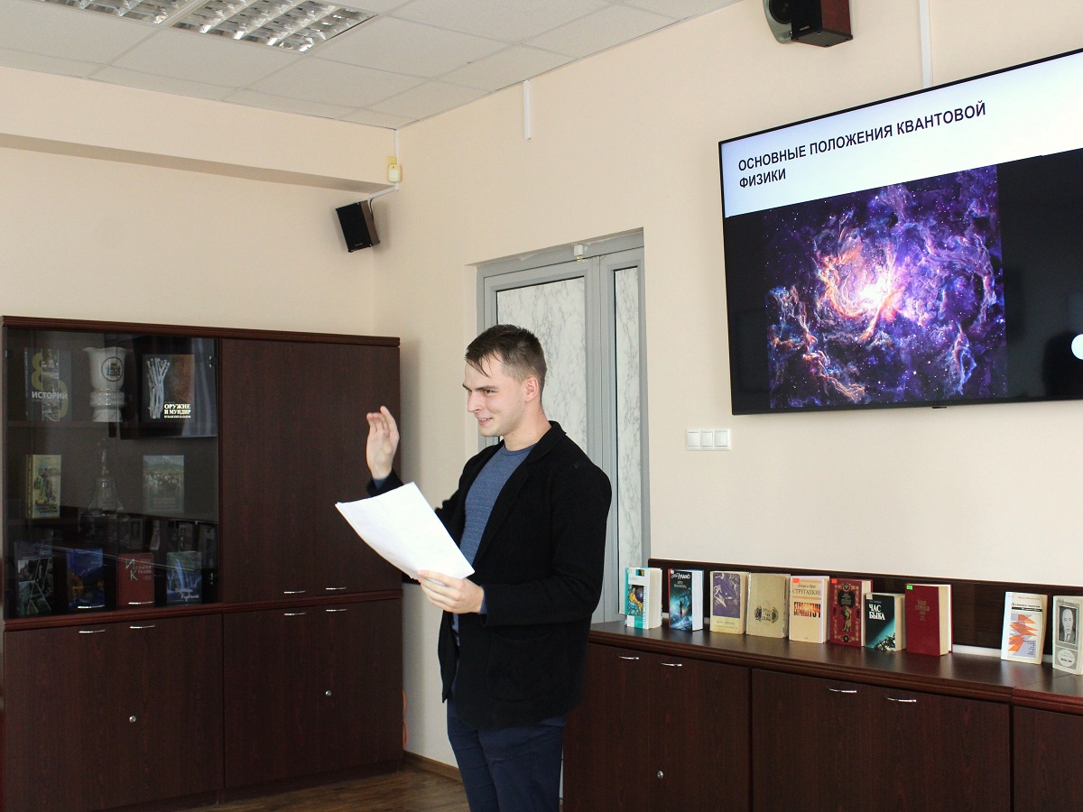 Студент физико-технического факультета Алексей Козельский объяснил, как современные физики-теоретики развивают квантовую физику, и насколько далеко они продвинулись в изучении мира элементарных частиц и пространственно-временных измерений, а ведущий встречи – сотрудник Научной библиотеки КубГУ, магистрант факультета журналистики Арсен Алексанян рассказал, как писатели и режиссеры используют концепции квантовой физики для построения сюжетов, превращая сложные научные идеи в доступные художественные образы.