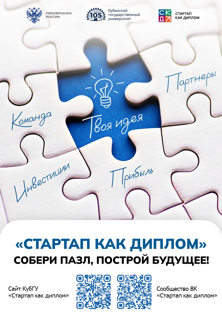 Хочешь, чтобы и о твоем проекте узнала вся страна, подавай заявку на участие на программу «Стартап как диплом» в 2025-2026 учебном годуЗаявки от студентов-выпускников принимаются до 27 ноября 2025 г. на официальном сайте университета в разделе «Наука и инновации»/Программа «Стартап как диплом».