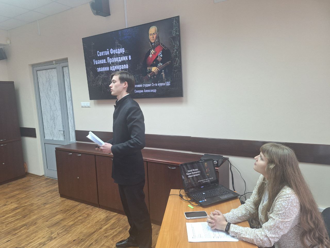 Ребята приводили жизнеописания великих деятелей русской истории. В частности, был представлен подробный доклад жития праведного Иоанна Русского, перенесшего великие страдания за веру православную, Федора Ушакова, известного не только тем, что под его руководством русский флот не проиграл ни одного сражения и ни один из его матросов не был пленен, но и тем что в повседневной жизни он был человеком высокодуховным и скромным, а также о многих других наших святых воинах.