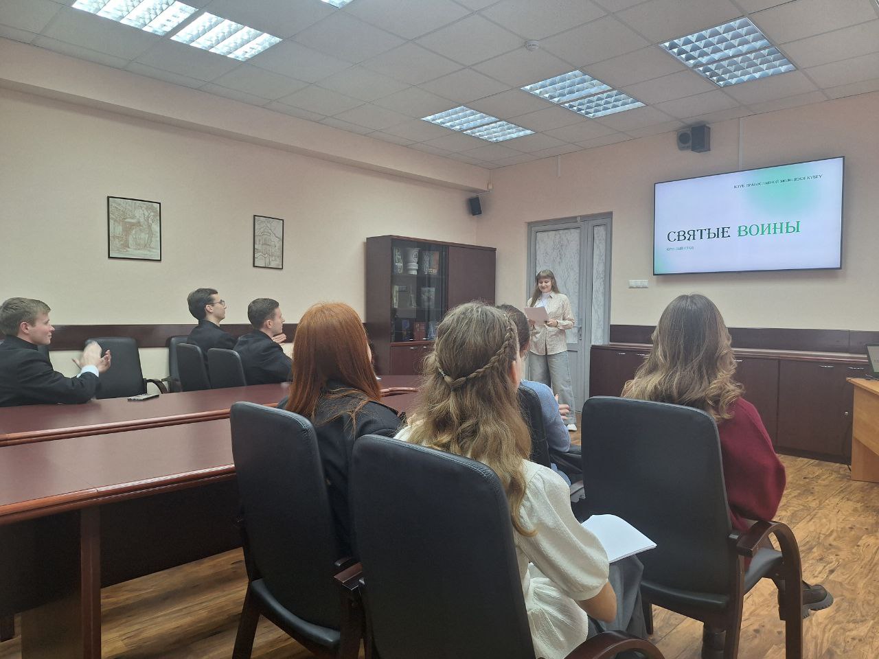 В Кубанском государственном университете прошел вечер памяти Православных воинов. Студенты из Клуба Православной молодежи совместно с семинаристами Екатеринодарской духовной семинарии Екатеринодарской и Кубанской Епархии русской Православной церкви при организационном участии Координационного центра КубГУ провели открытую презентацию докладов по теме «Святые воины».