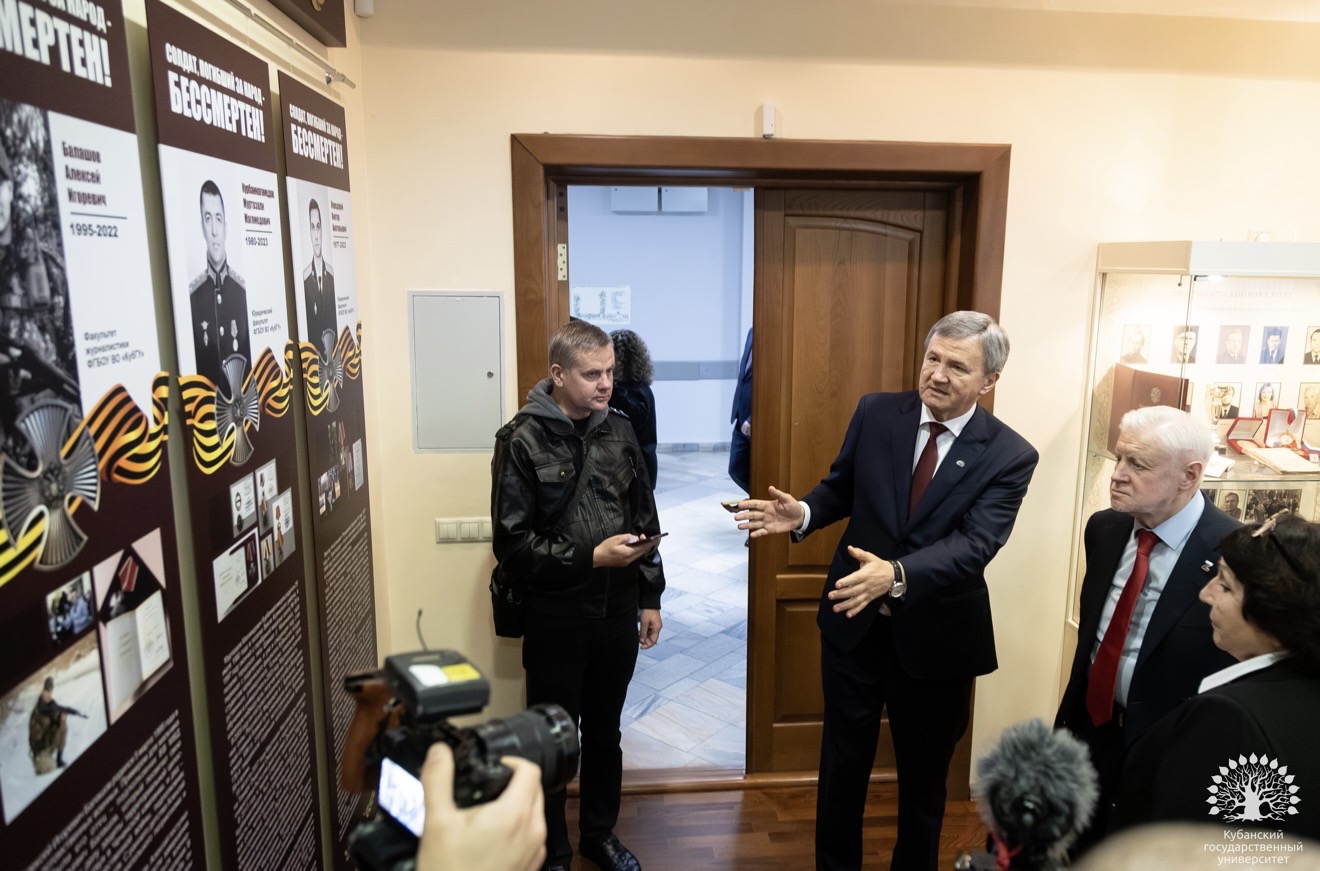 В сопровождении ректора Михаила Астапова гость осмотрел территорию кампуса, побывал в историческом музее, где на период визита также развернулась выставка отдела редких книг Научной библиотеки КубГУ. Также особое внимание Сергей Михайлович уделил памятному мемориалу студентам и преподавателям университета, погибшим в зоне специальной военной операции.