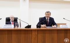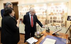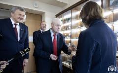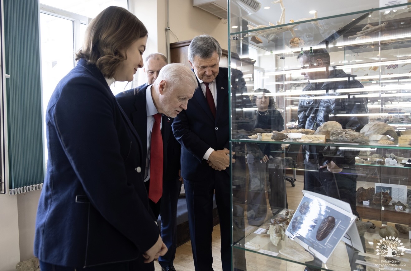 Отдельное внимание было уделено геологическому музею вуза, ведь его первое образование было именно геологическое. С.М. Миронов не только познакомился с уникальной экспозицией минералов вуза, но и подарил экспонат из своей личной коллекции.