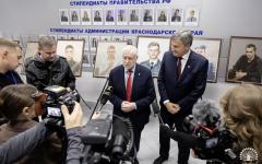 Следующим пунктом визита стала художественная выставка картин «Лица Победы». Это портреты действующий военнослужащих и погибших Героев Отечества, написанные студентами и преподавателями художественно-графического факультета КубГУ.