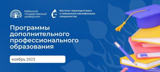 | с 14.11.2025 по 05.12.2025 | Психолого-педагогические аспекты обучения и воспитания в высшей школе | ПК, 72 | 4 500 р. | 8(861)21-99-637 |