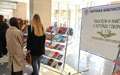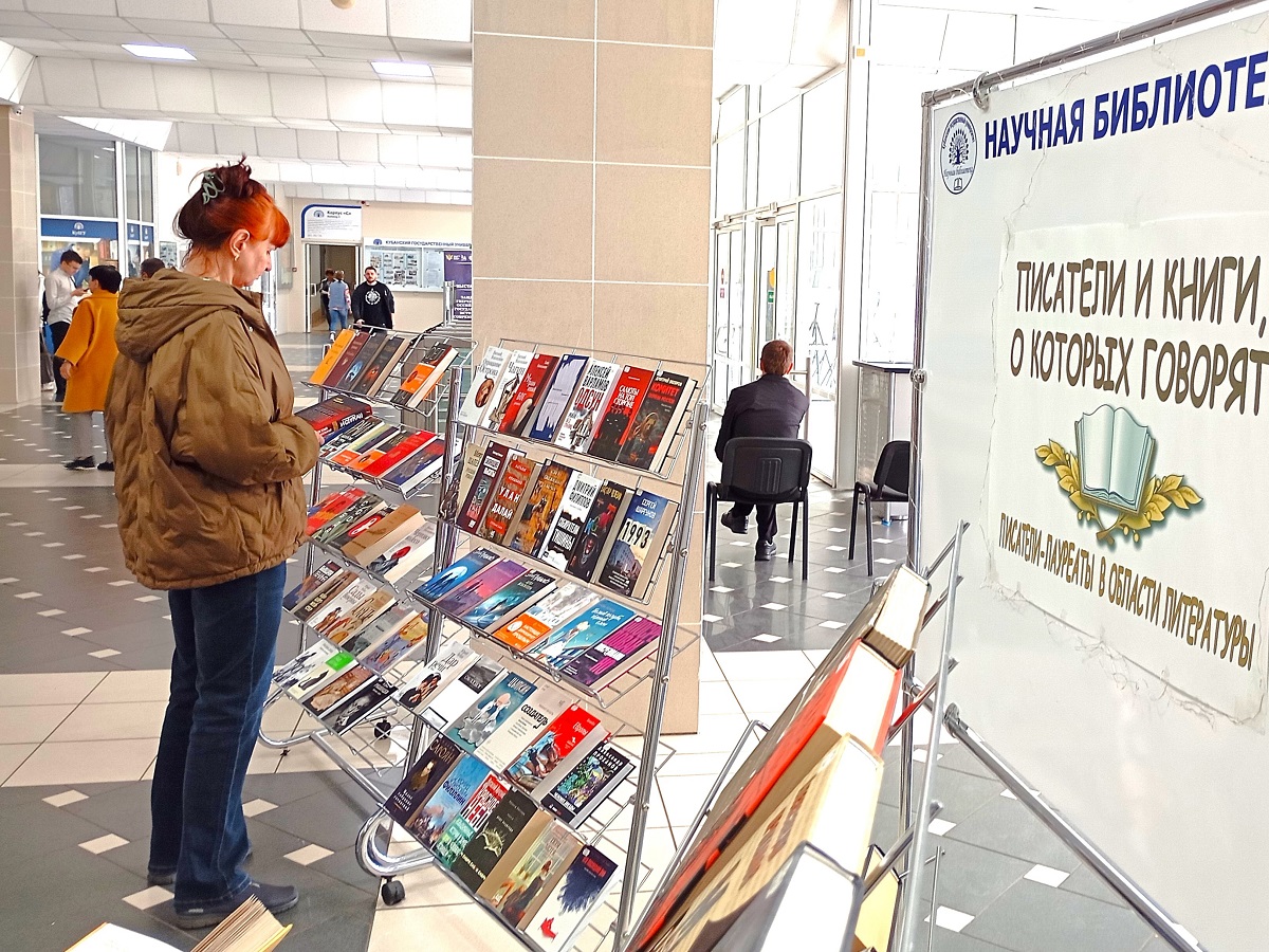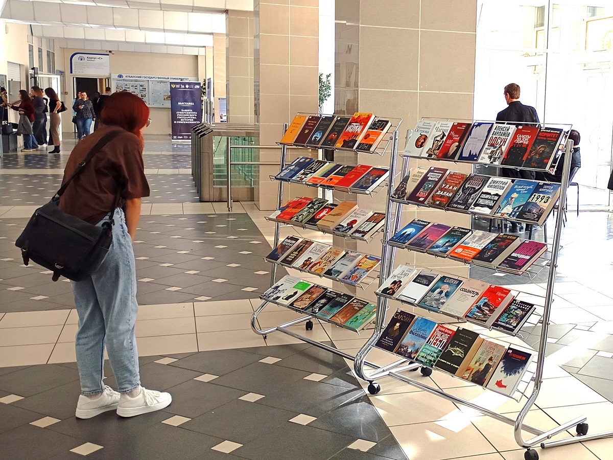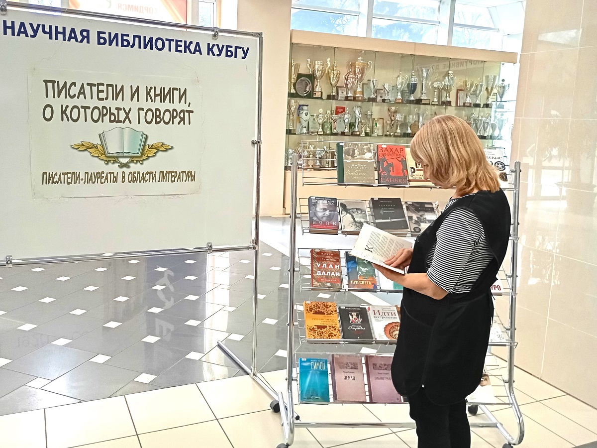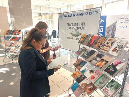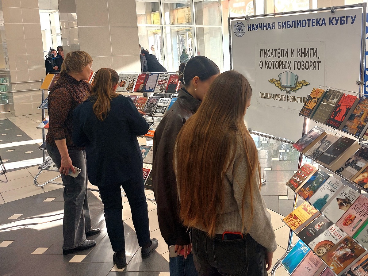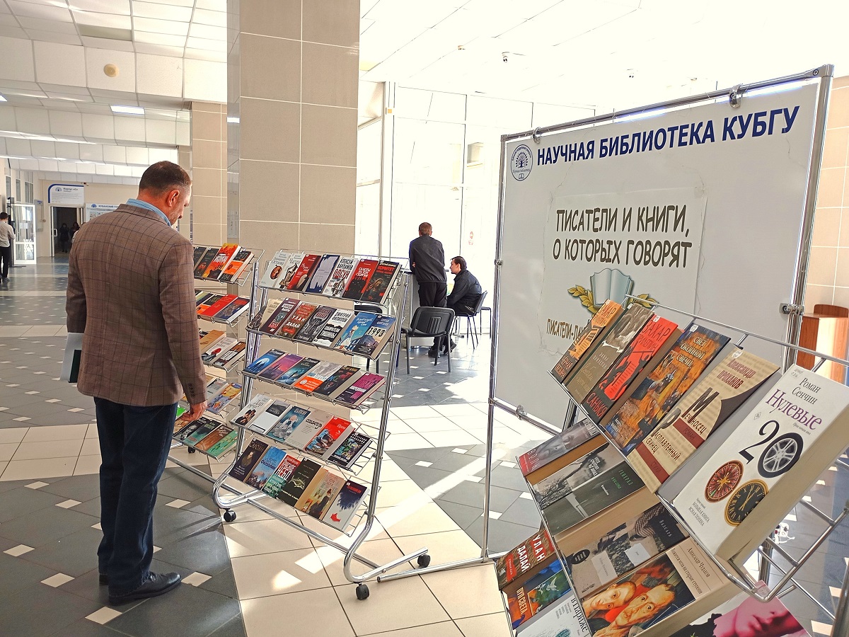 27 ноября в центральном холле КубГУ Научная библиотека провела книжную выставку-просмотр «Писатели и книги, о которых говорят».