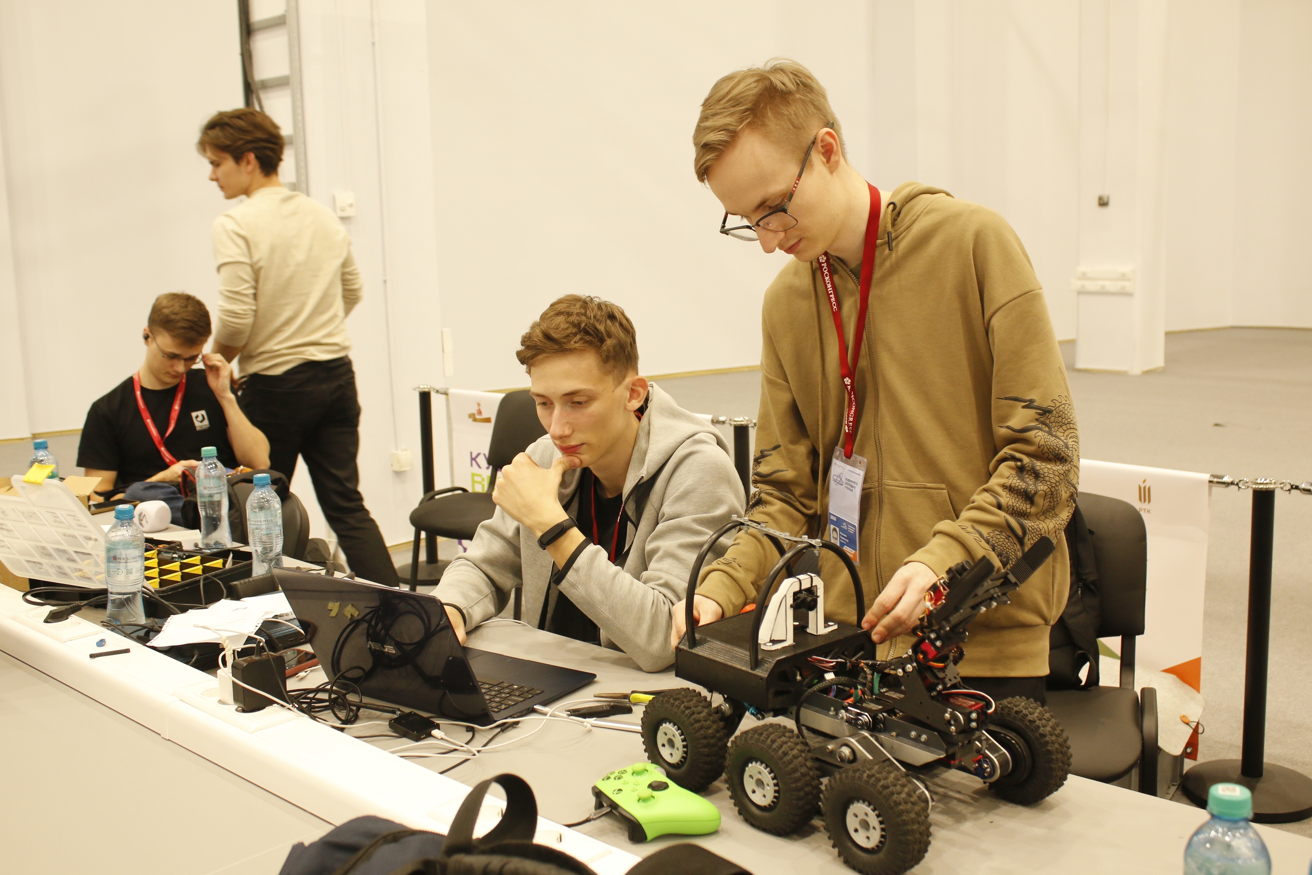— Мы уже получили достаточно интересный опыт. Мы пообщались с нашими коллегами из разных городов и даже стран. Нас ждёт сейчас доработка нашего алгоритма автоматического перемещения по площадке. Завтра последний заезд и мы посмотрим, что получится по баллам.