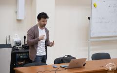 Первым событием стала лекция Артура Кадурина, директора центра ИИ-разработки новых лекарственных препаратов Института Искусственного Интеллекта (AIRI, Москва). Артур Аликович, один из ведущих российских ученых в области применения ИИ в биомедицине, познакомил студентов с миром high-impact research.