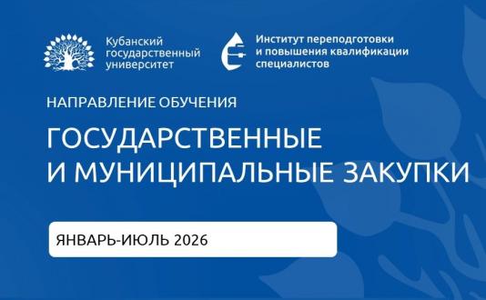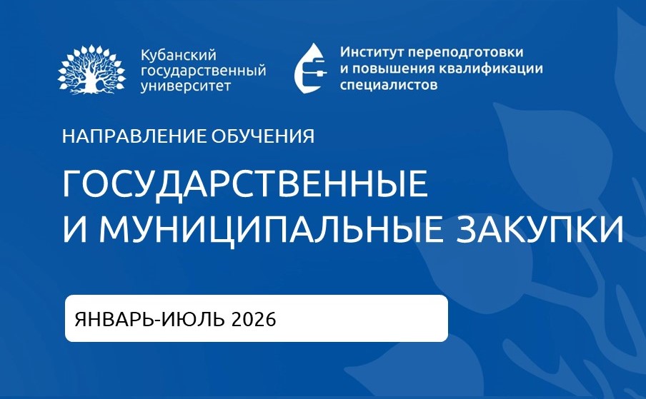 В целях подготовки специалистов, осуществляющих деятельность в сфере закупок товаров работ, услуг для государственных и муниципальных нужд, КубГУ проводит обучение по дополнительным профессиональным программам: