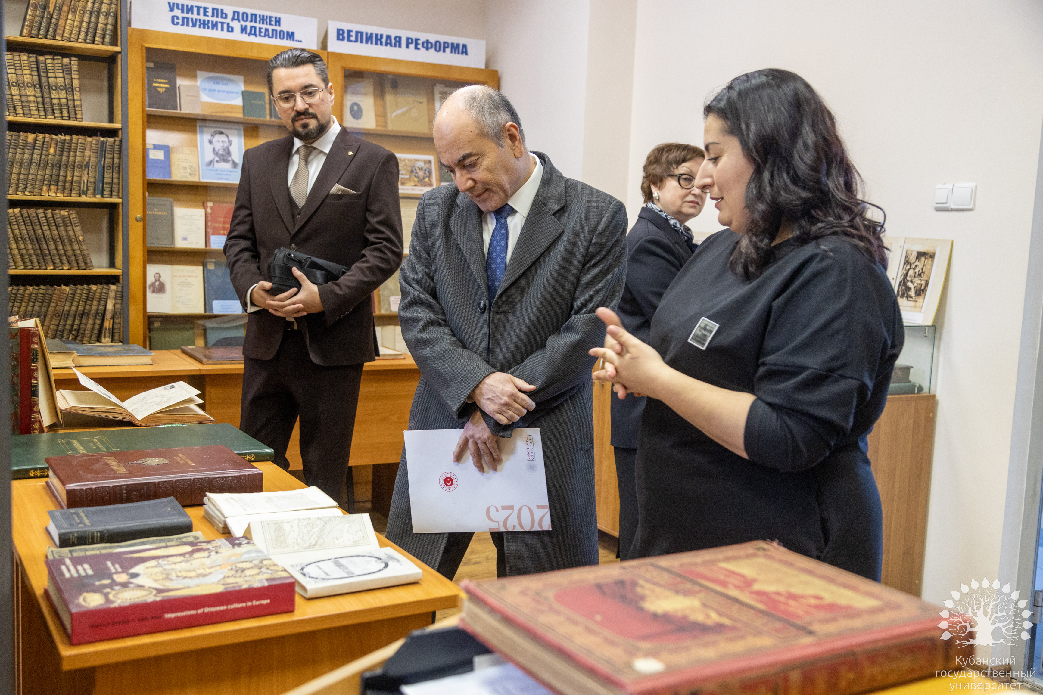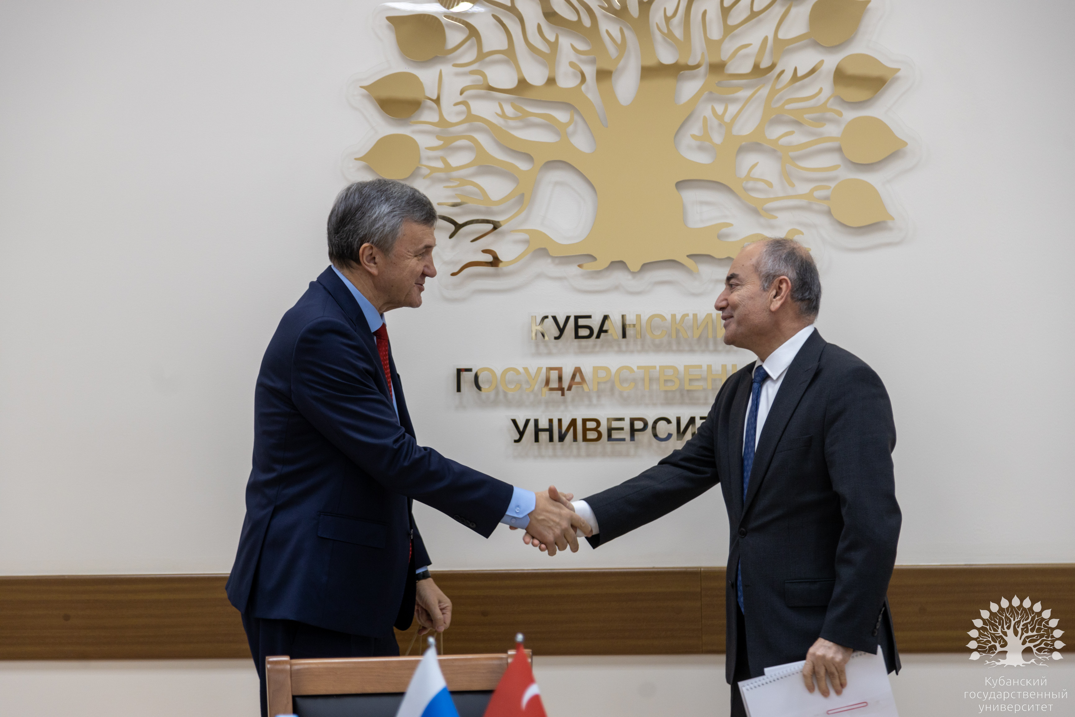 Во время официальной встречи ректор Кубанского государственного университета Михаил Астапов кратко проинформировал Генерального консула об основных достижениях университета в научной и образовательной деятельности, в том числе о проектах, реализуемых совместно с зарубежными партнерами. Господин Озбай высоко оценил уровень развития инфраструктуры и академической среды.
