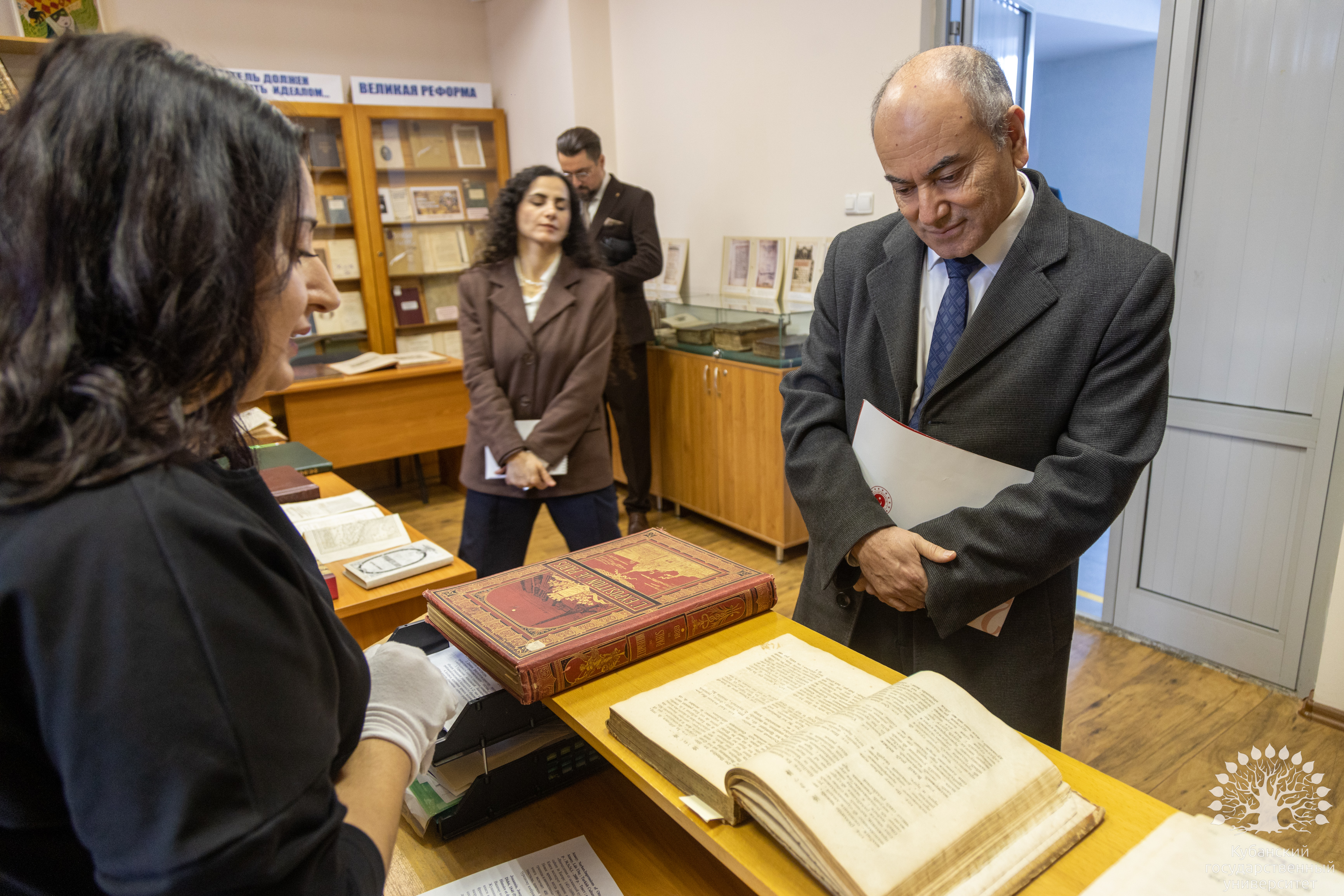 Директор департамента по международным связям Галина Говорова и заместитель директора департамента Евгения Ротай познакомили гостей с богатой историей крупнейшего вуза Кубани, его традициями и современными достижениями. В ходе визита делегация посетила выставочный зал и галерею портретов ректоров университета, музейный комплекс КубГУ, фонд редких книг научной библиотеки.