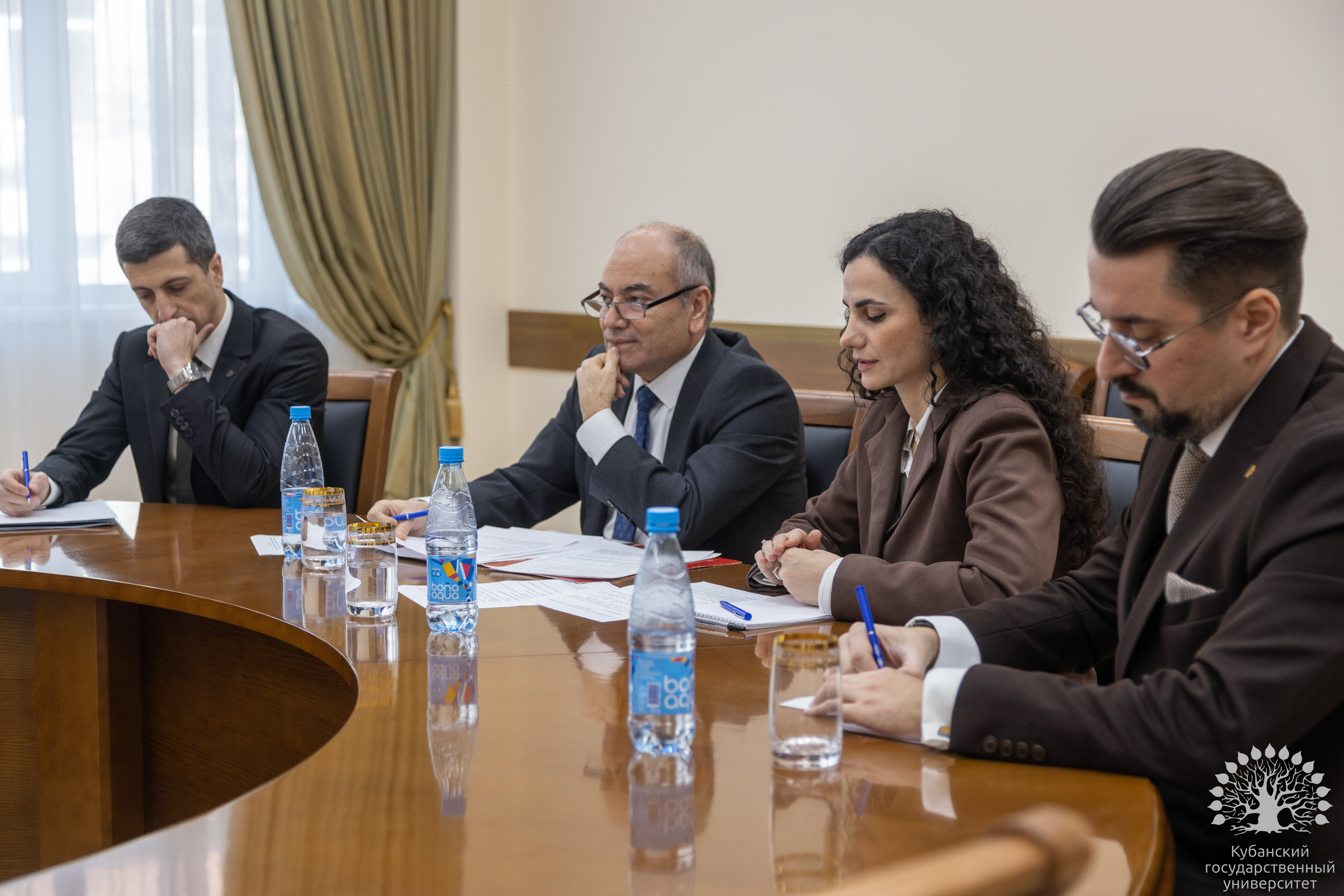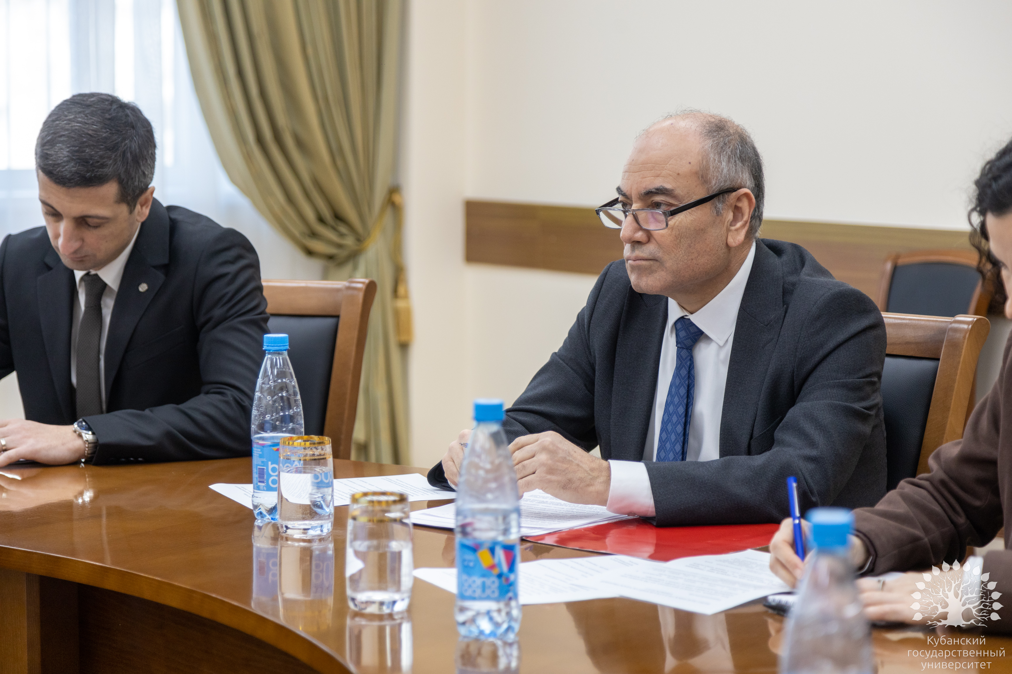 По словам Генерального консула, после вступления в должность в ноябре прошлого года он уже провел встречу с губернатором Краснодарского края, главой Республики Адыгея и мэром города Краснодара. Генеральное консульство заинтересовано в развитии академических, культурных и гуманитарных связей между Россией и Турцией. Ректор КубГУ информировал гостей, что в настоящий момент в университете обучается 9 граждан Турции. Из них один студент обучается на экономическом факультете, один студент – в Институте географии, геологии, туризма и сервиса, и 7 граждан Турции – на подготовительном отделении для иностранных граждан и лиц без гражданства. Ректор сообщил, что в прошлом году сотрудники КубГУ принимали участие в отборочных мероприятиях Россотрудничества в Анкаре, и таким образом были отобраны 4 студента для обучения в КубГУ по квоте Правительства РФ.