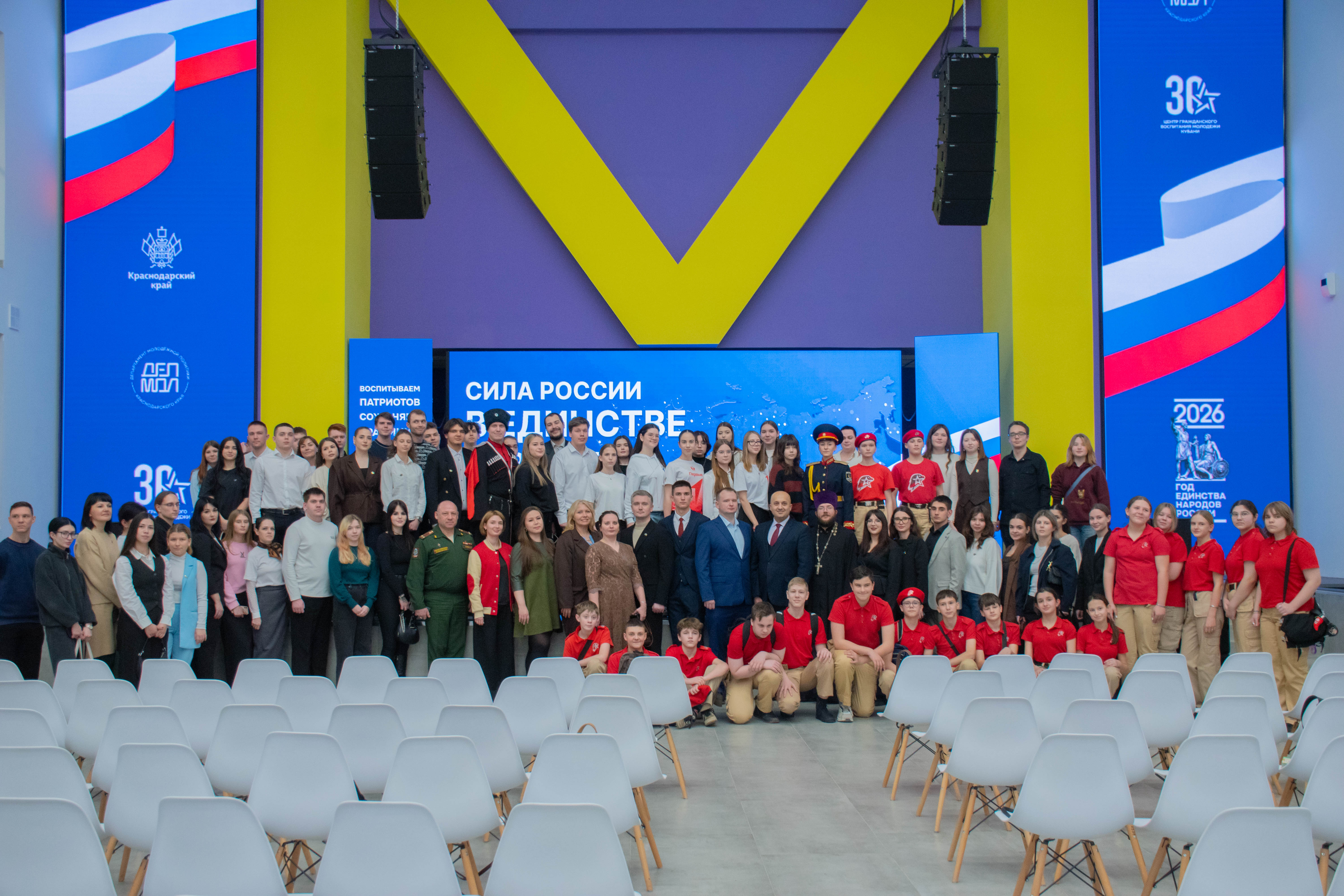 В Доме Молодежи Краснодара прошел краевой патриотический фестиваль, посвящённый укреплению дружбы и взаимопонимания среди многонационального народа Кубани. Мероприятие прошло под девизом «Сила России в единстве народов!».