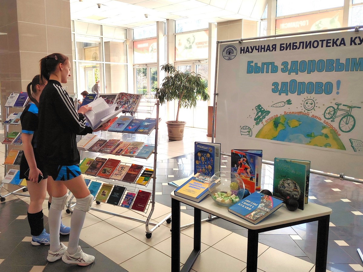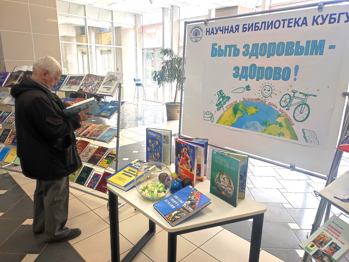 8 апреля научная библиотека КубГУ провела в центральном холле книжную выставку «Быть здоровым - здорово!», посвященную Всемирному дню здоровья.
