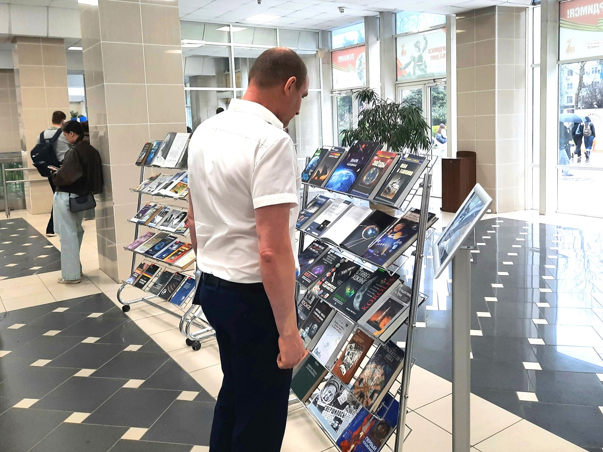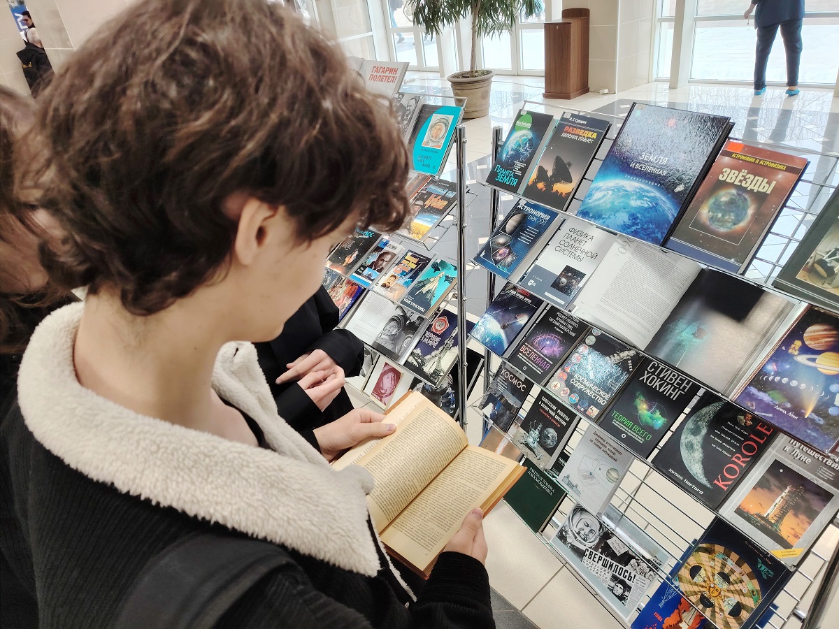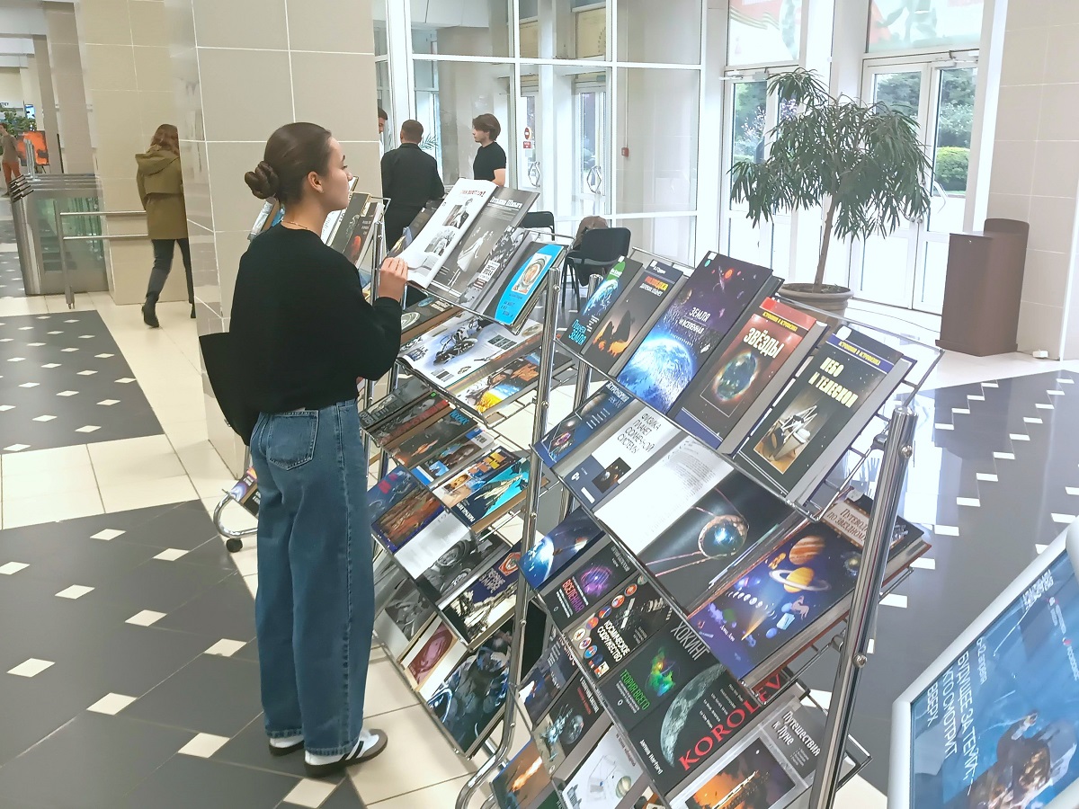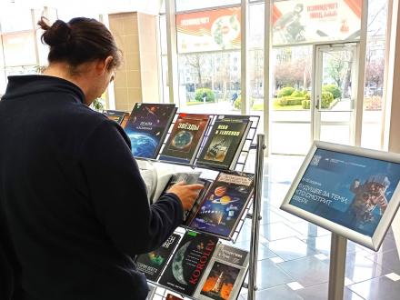На выставке была представлена литература, позволяющая взглянуть на космос с разных сторон. Это издания о строении Вселенной, книги по истории развития космонавтики, ракетостроения и современным достижениям в освоении космического пространства.