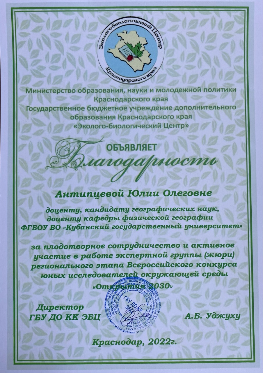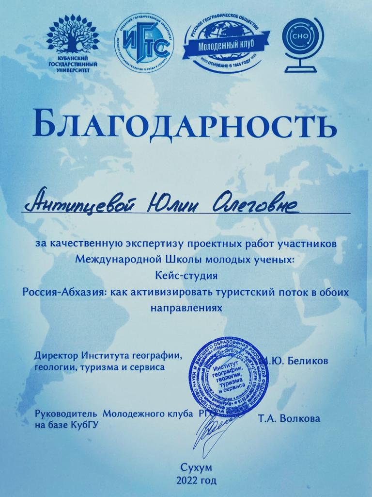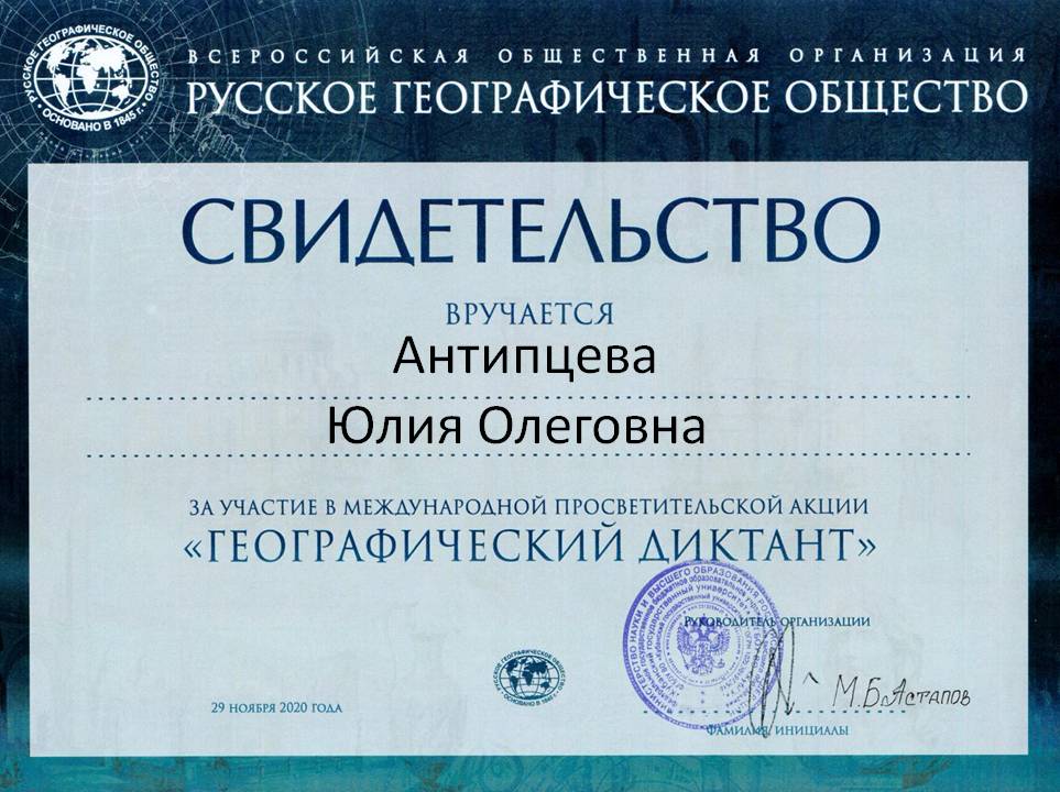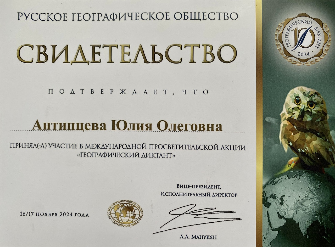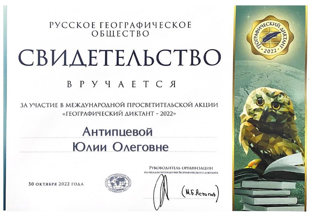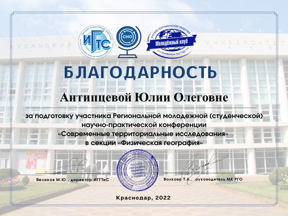 Антипцева Юлия Олеговна