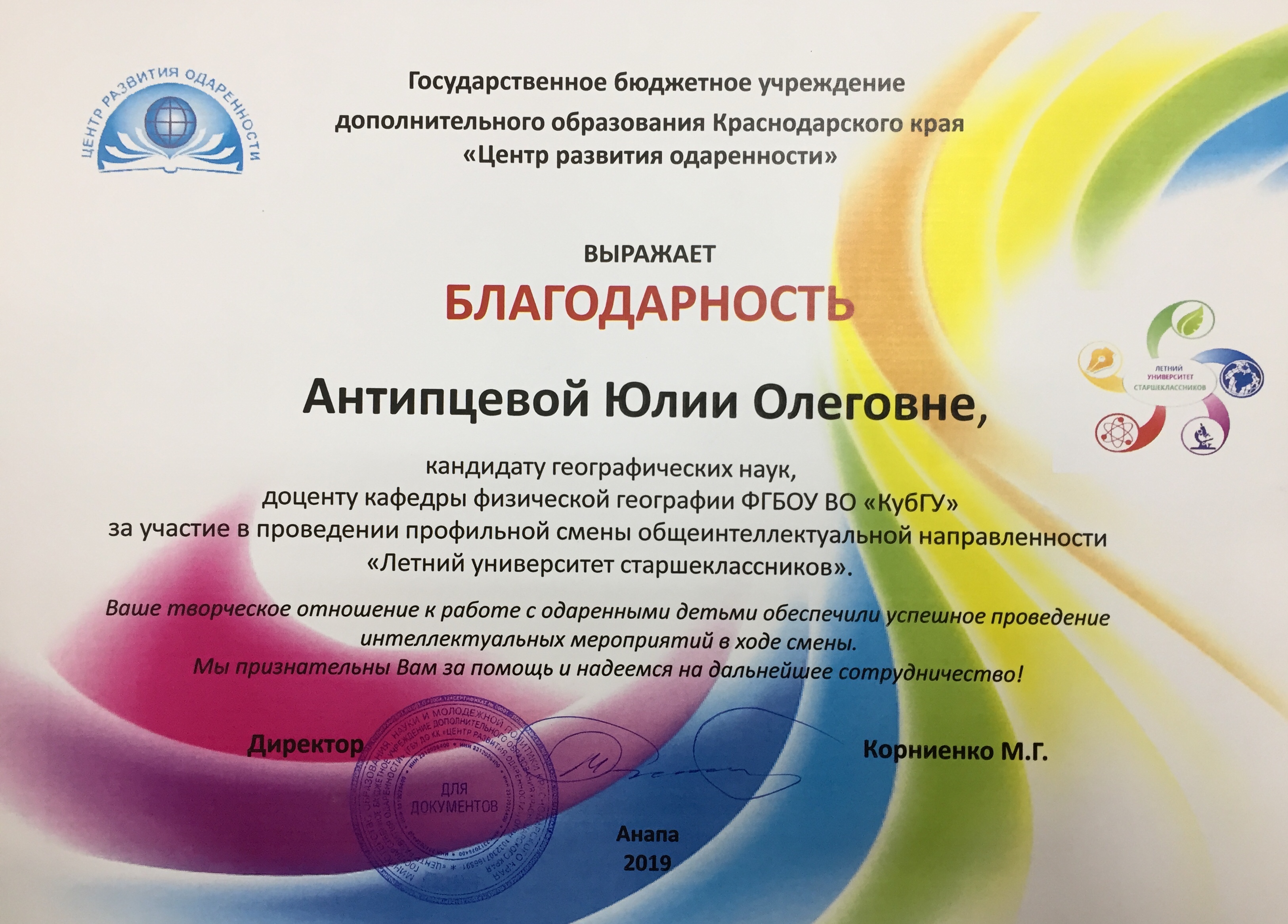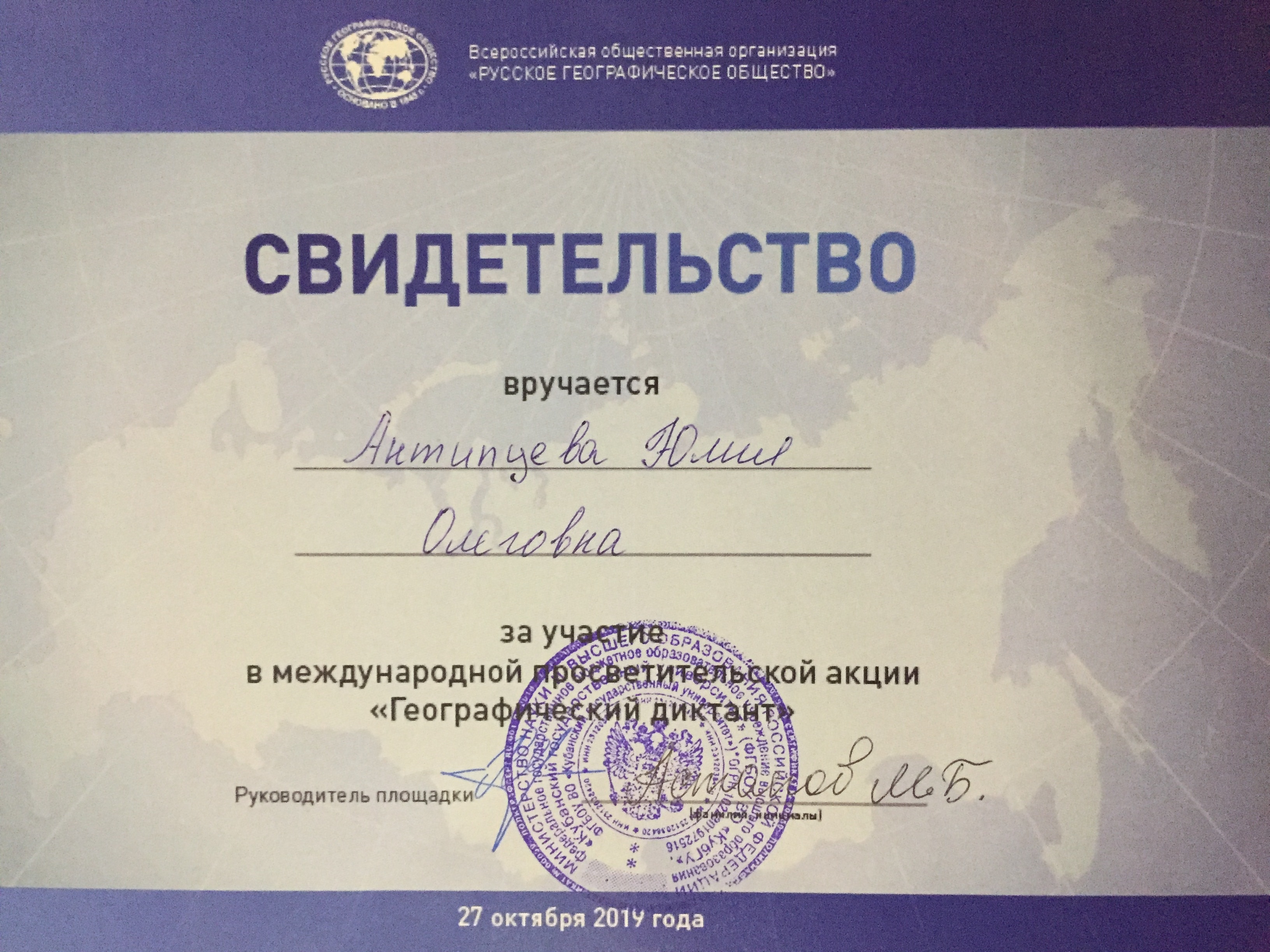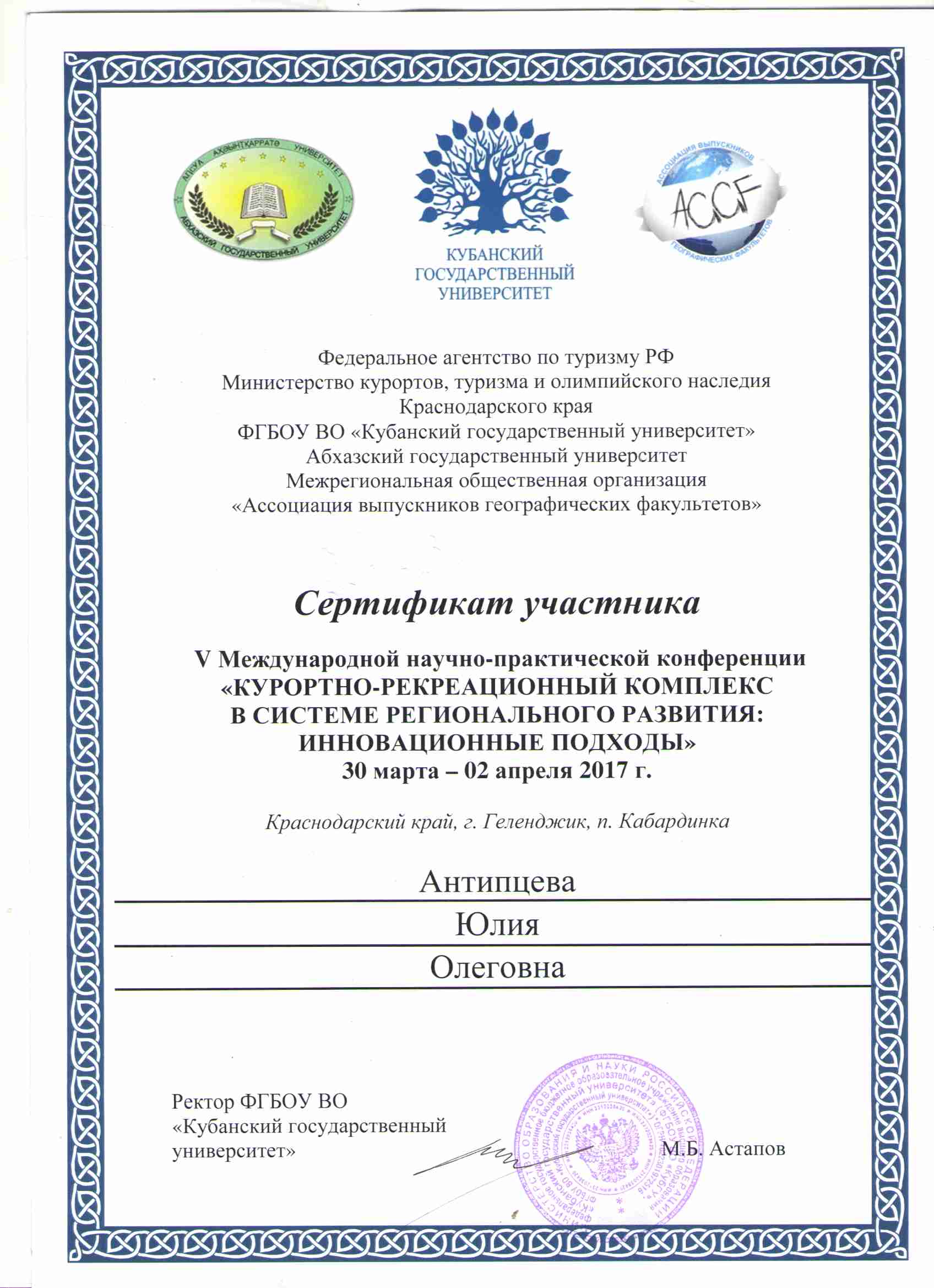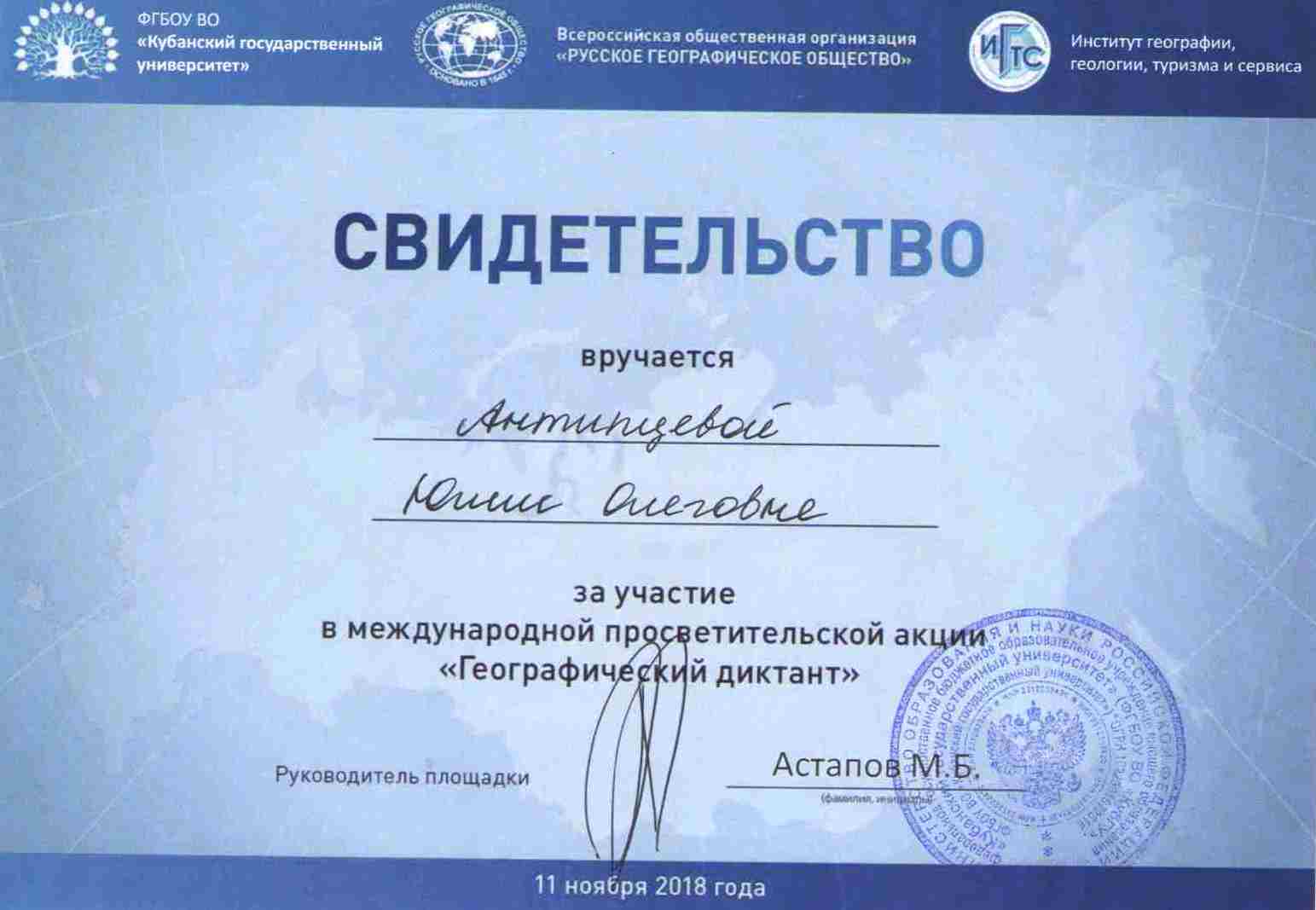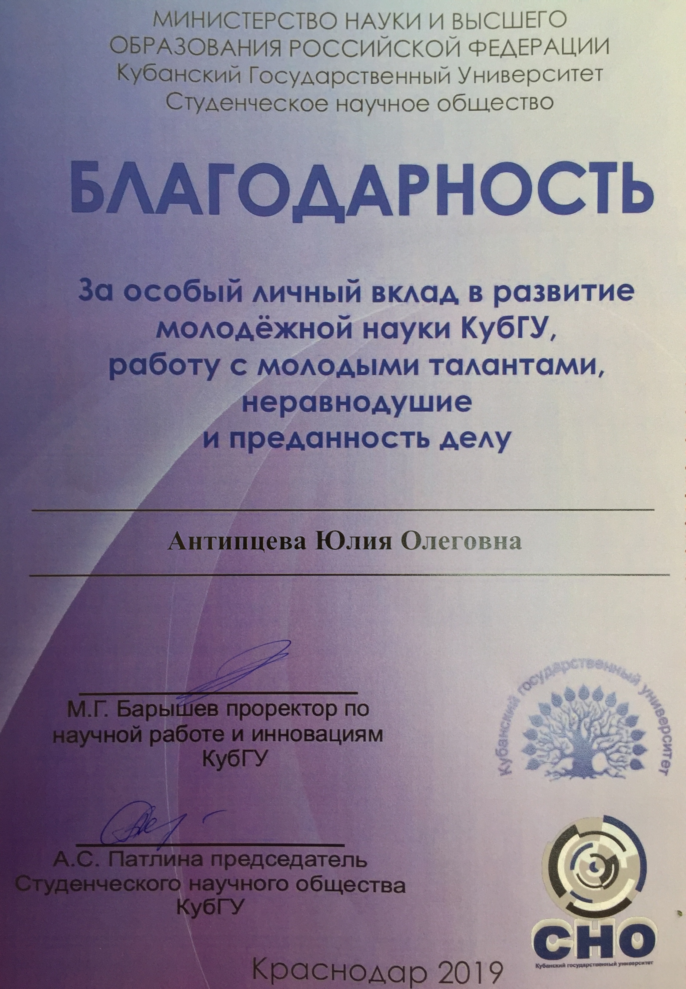 Антипцева Юлия Олеговна